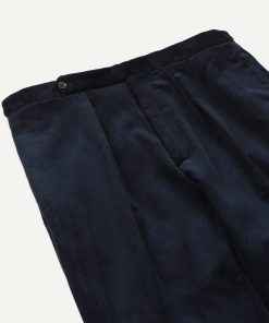 Drakes Men’s Navy Mid-wale Corduroy Single Pleat Trouser