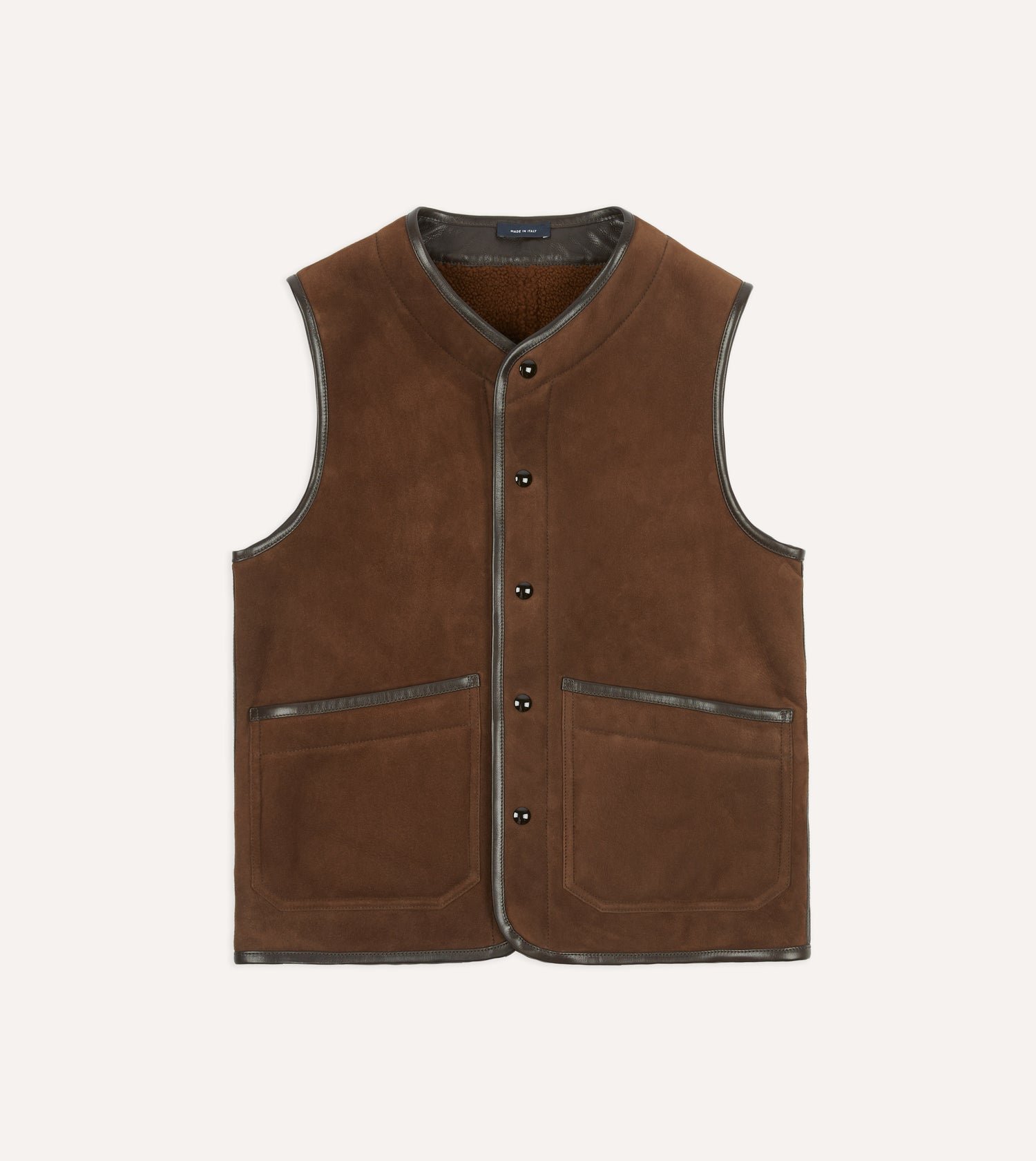 Be the first to review “Drakes Men’s Brown Suede Shearling Vest” Cancel reply