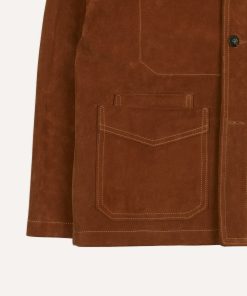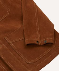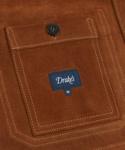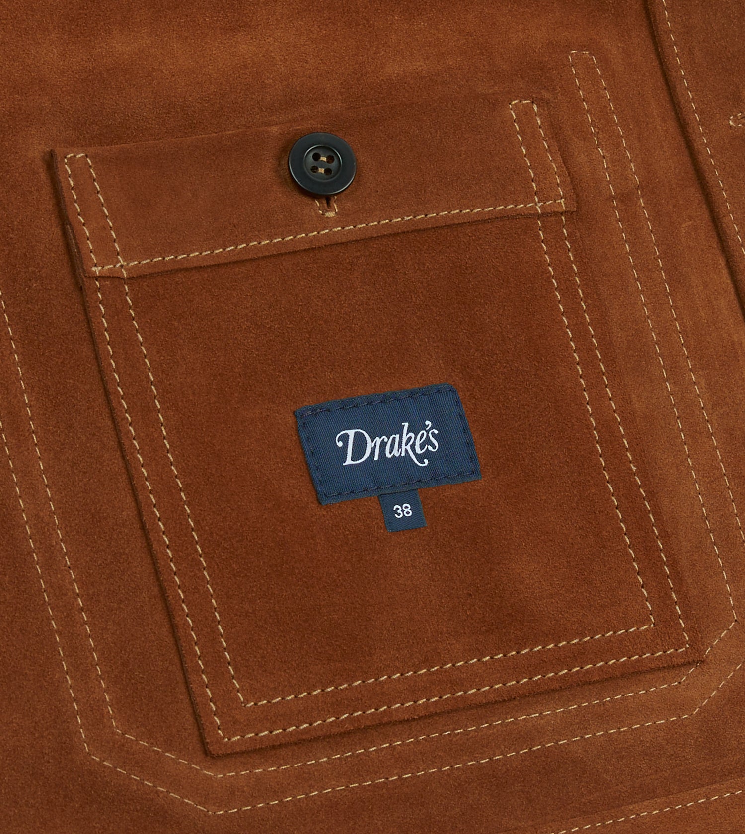 Drakes Men’s Rust Heavyweight Suede Five-pocket Chore Jacket