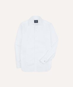 Drakes Men’s White Cotton Long Point Collar Dinner Shirt