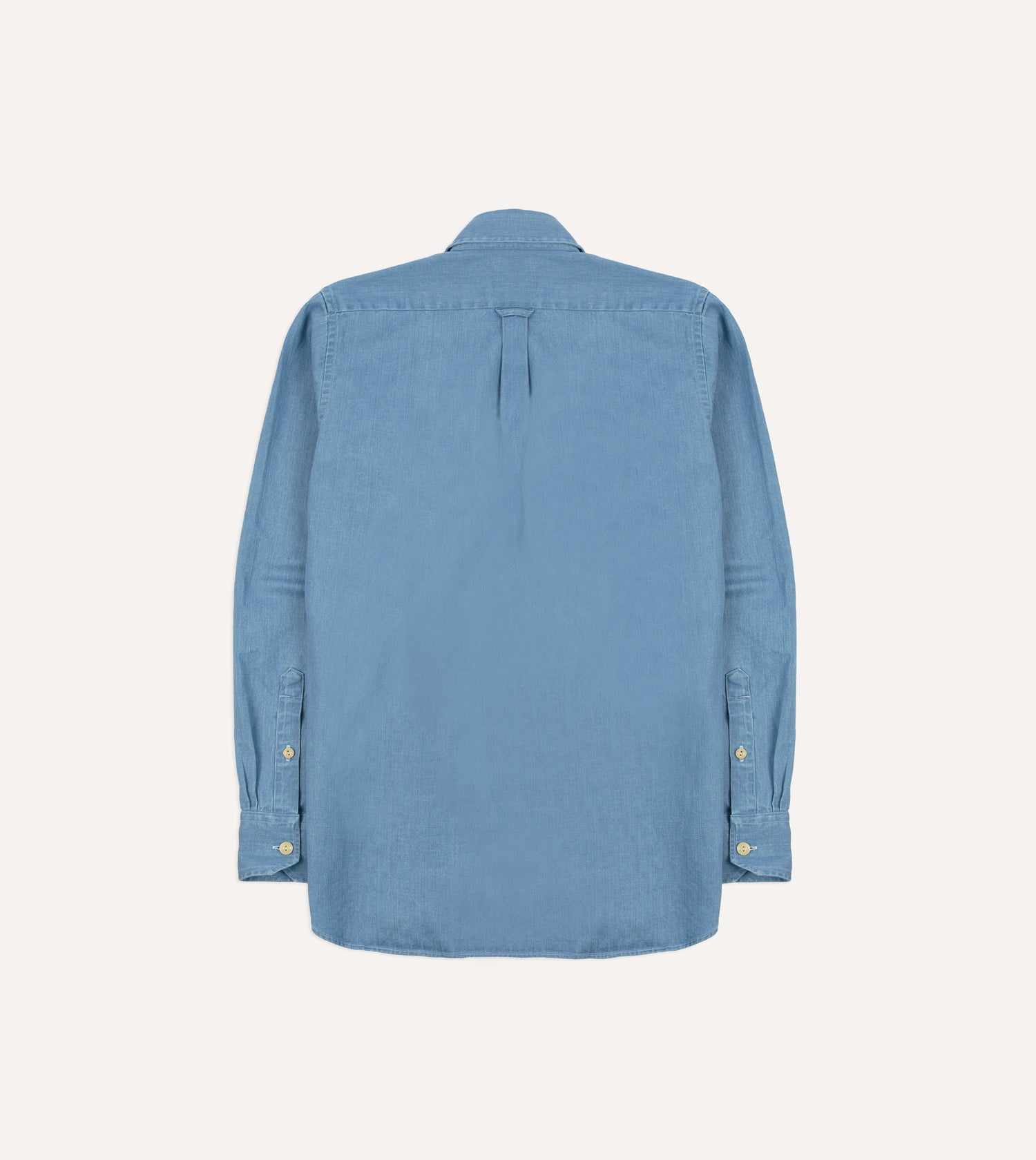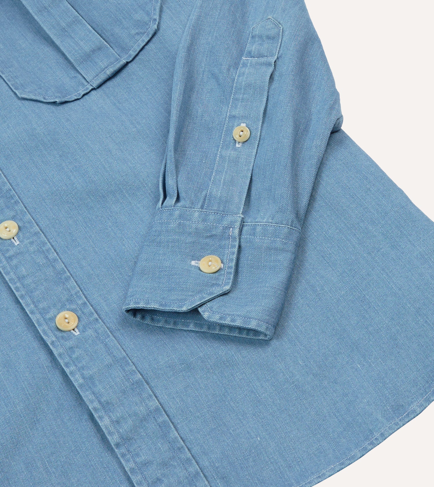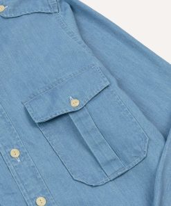 Cut in our casual block and made from a cotton denim fabric, this shirt draws on vintage military tailoring, with practical details reimagined for modern wear.|Twin pleated chest pockets and shoulder epaulettes underline its utilitarian heritage, while mitred single-button cuffs, a box pleat, and locker loop round out the design. Rinse washed and lightly pressed for a broken-in feel from the first wear, it’s practical, versatile, and just the right side of rugged.