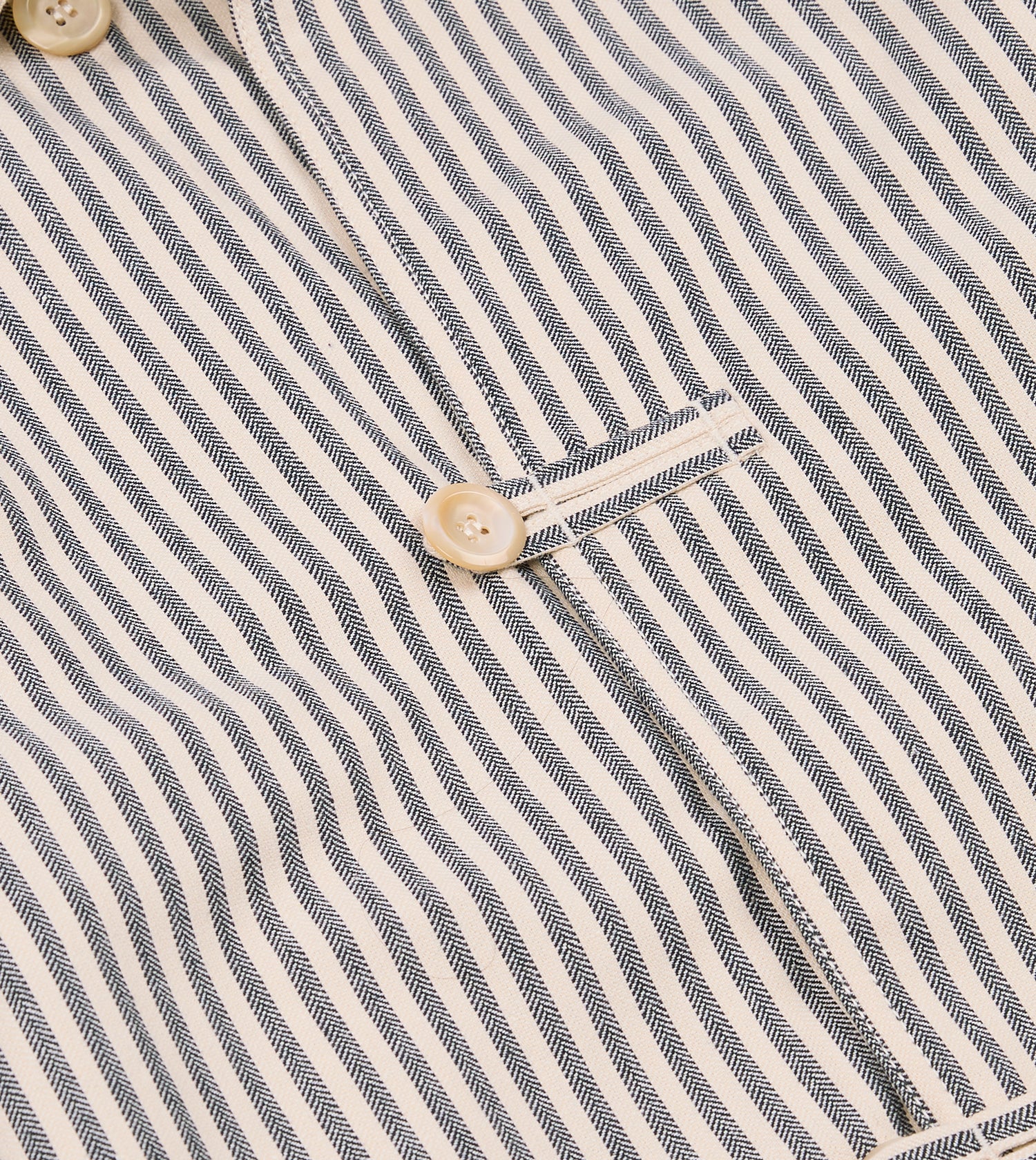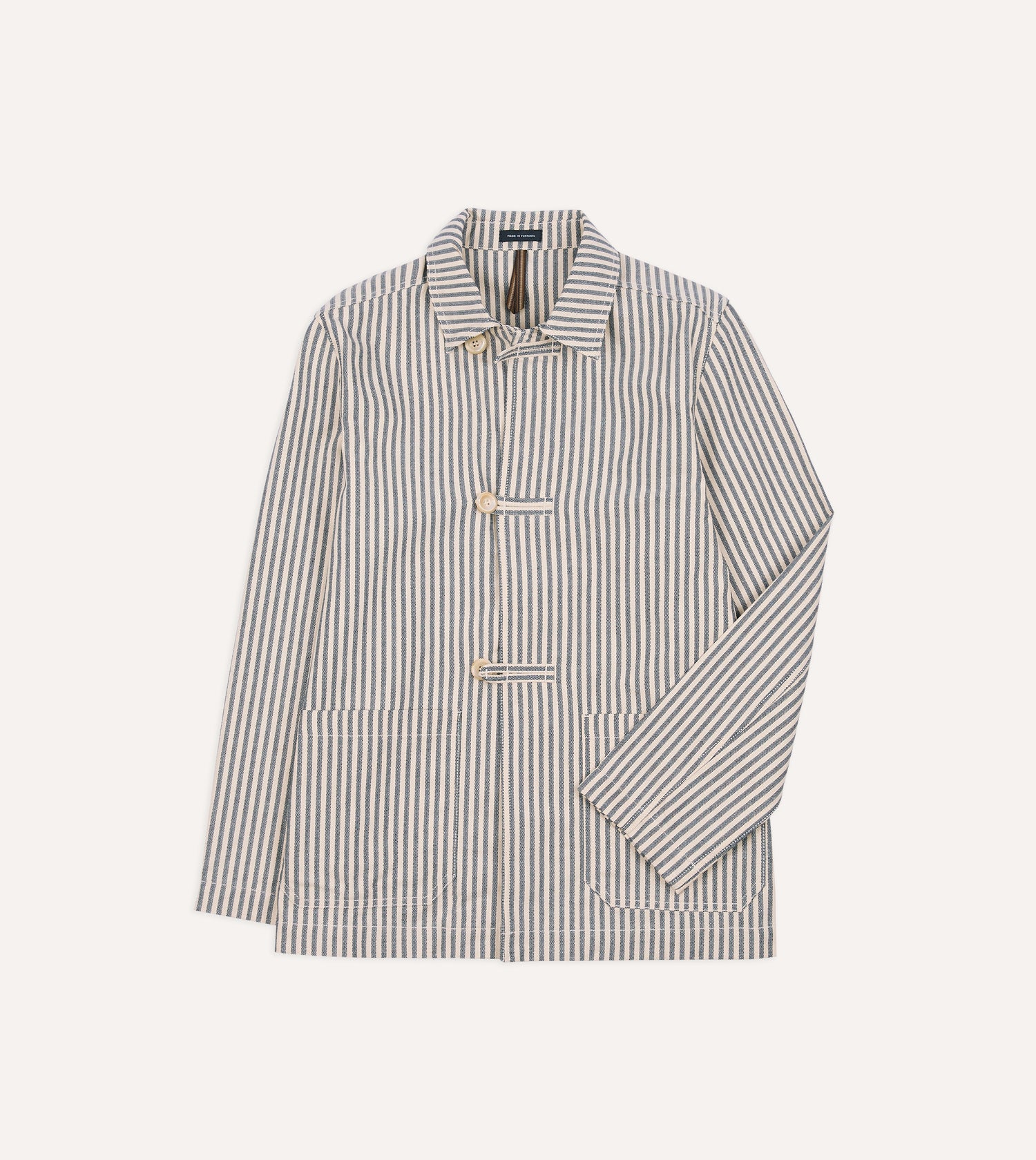 For this iteration of our popular chore jacket, we took inspiration from the classic navy deck jacket, alongside the traditional czamara.|Cut from a 6.7oz herringbone weave blend of cotton and linen, with two large outer pockets and two on the inside, the jacket features three loop and button fastenings along the front. Elsewhere – it’s business as usual, with our signature triple stitching and contemporary cut.