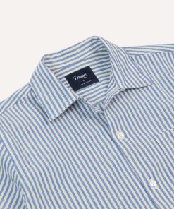 The camp collar holiday shirt has taken many forms‚ and many names‚ over the years, but its essential essence remains undiluted. It’s a simple, square-hemmed, short-sleeved shirt with an open collar. Not to be overdesigned or overthought.|The Drake’s take on this warm weather staple brings the story up-to-date; cut with a neat open collar, pointed chest pocket, plain front and straight hemline, all constructed from a soft blend of cotton and linen. It is, quite simply, the quintessential high summer shirt.
