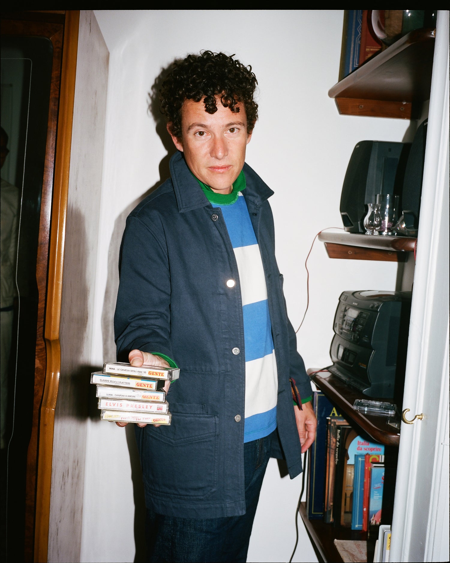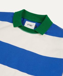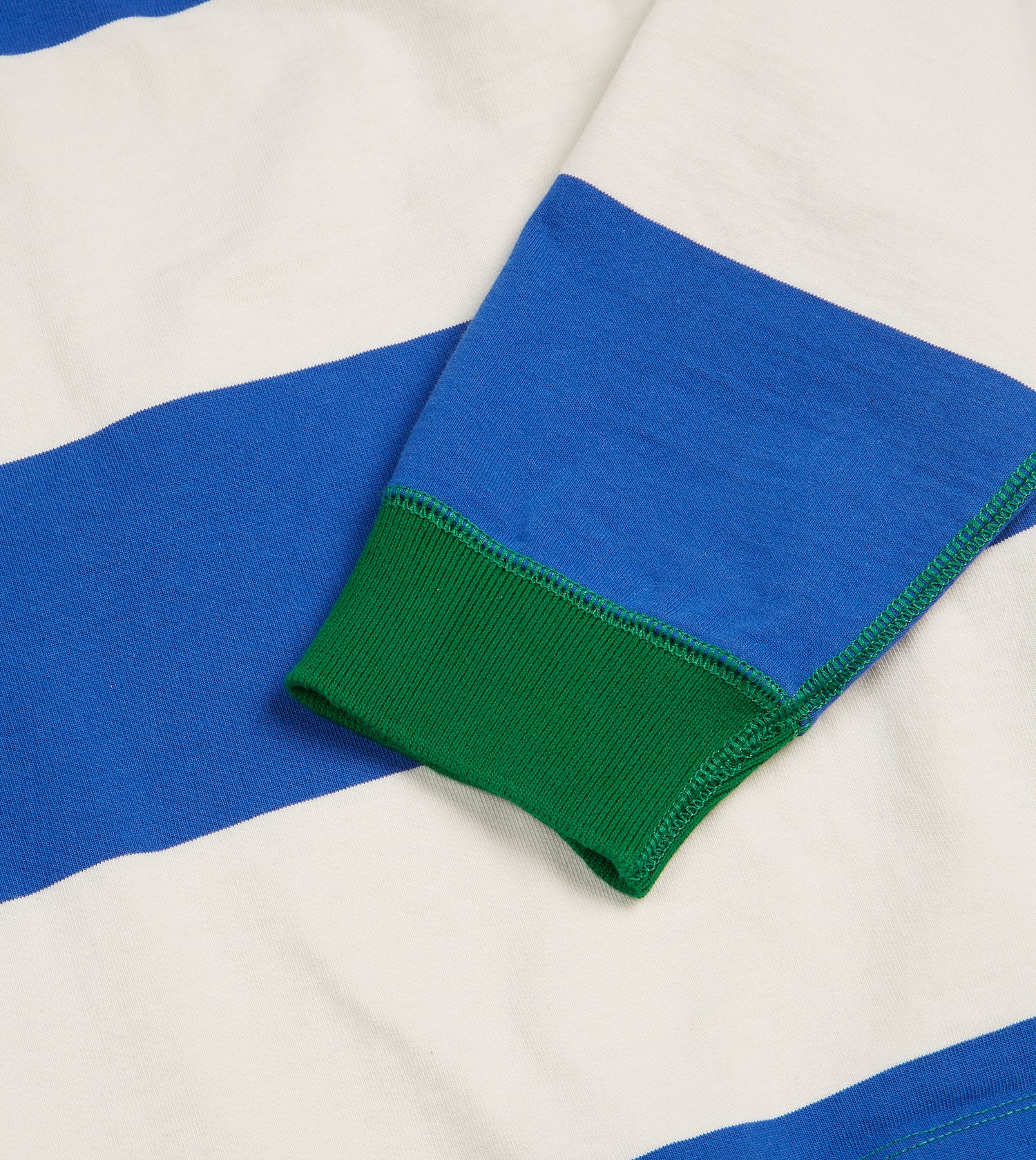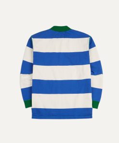 Drakes Men’s Blue And White Wide Stripe Mock Collar Long-sleeve Jersey