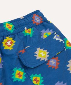 Drakes Men’s Blue Kilim Print Nylon Drawstring Swim Shorts