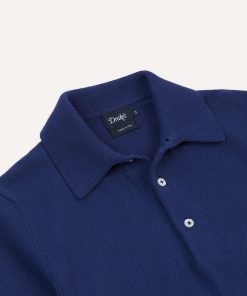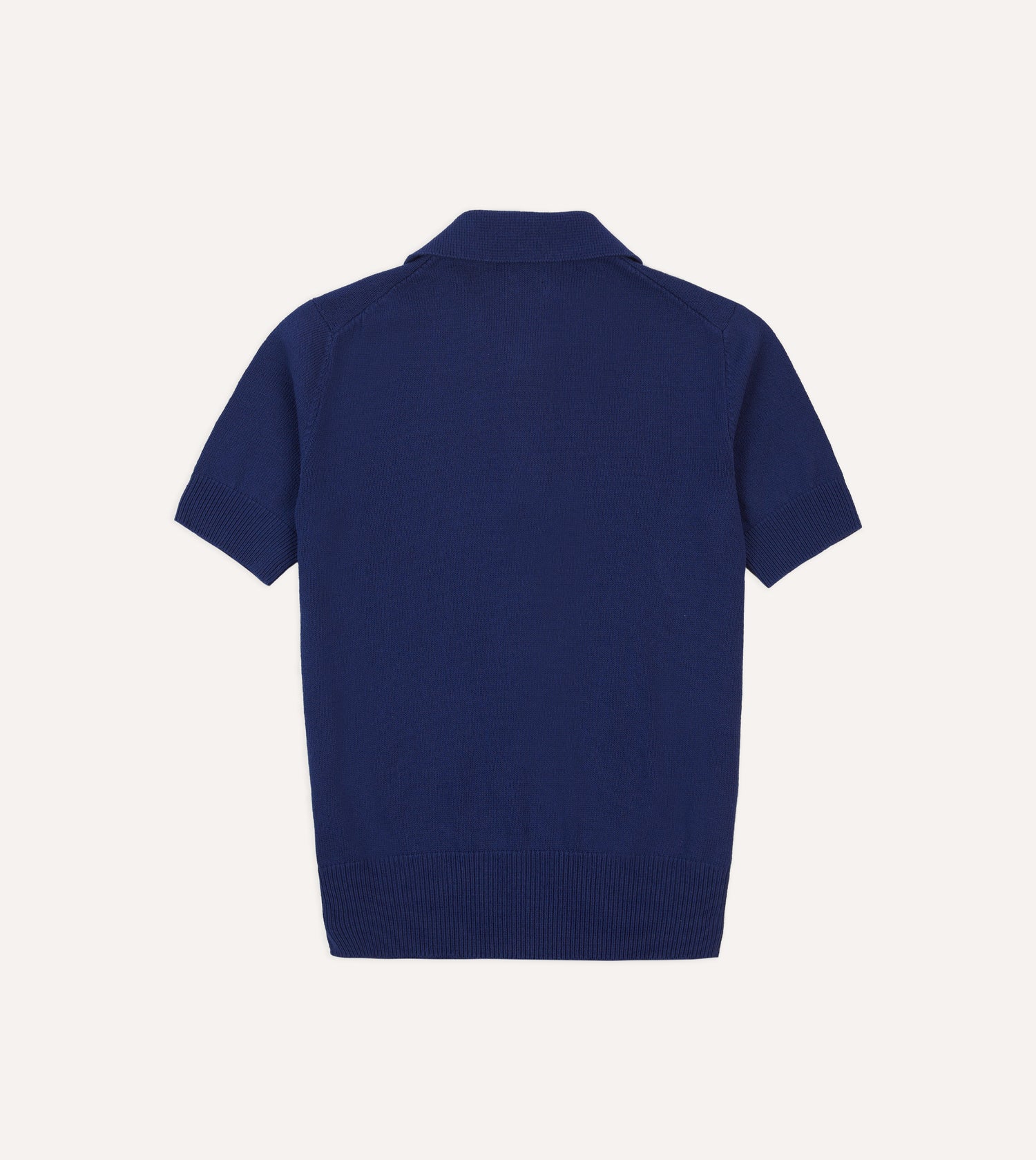 Drakes Men’s Blue Knitted Crepe Cotton Short-sleeve Polo Shirt