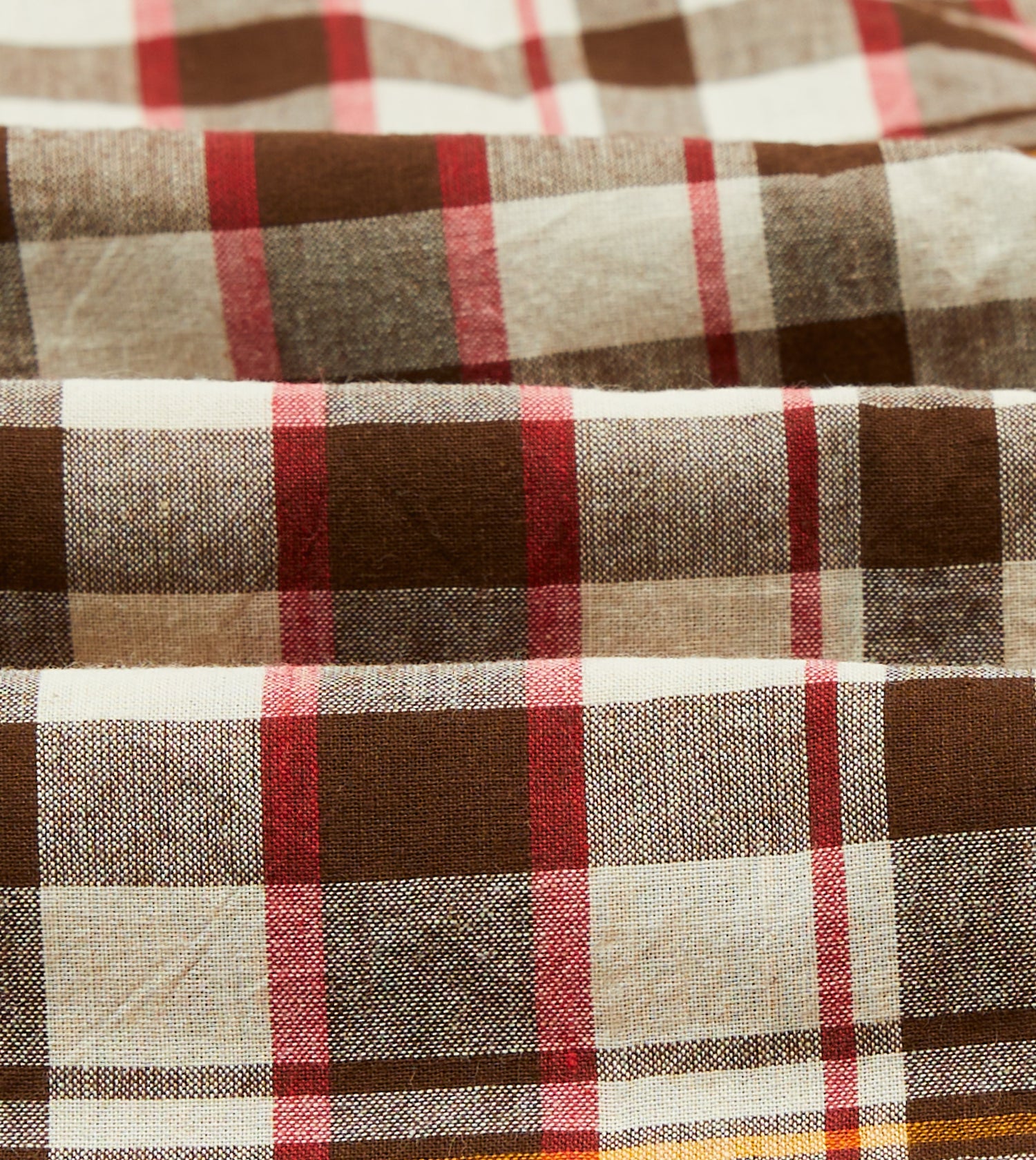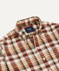 Madras is a certified summer staple; woven in in Chennai, India (formerly named Madras) from a delicate, short-staple cotton fibre that is home-spun by hand, resulting in the slubby unique texture.|With the single-needle construction de rigueur to Drake’s shirting, plus whipped mother of pearl buttons and a button-down collar evocative of the style’s mid-century Ivy heyday, this pairs perfectly with our Games trousers and loafers.