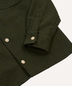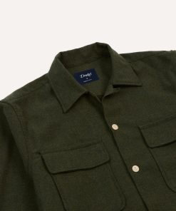 Built for both utility and understated style, this rugged shirt moves seamlessly from workshop to weekend. Practical yet effortless, it is designed to be anything but a chore to wear.|Cut with a camp collar for unrestricted movement, a straight square hem, and single-button cuffs, it features two flap pockets, perfect for keeping essentials close without weighing down your trousers. Every detail, from the fisheye corozo buttons to the single-needle construction, reflects Drake’s hallmark attention to quality.