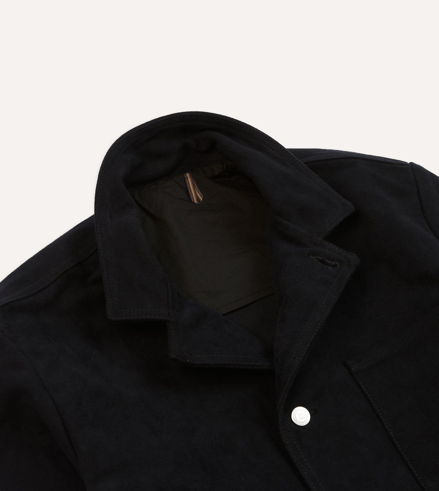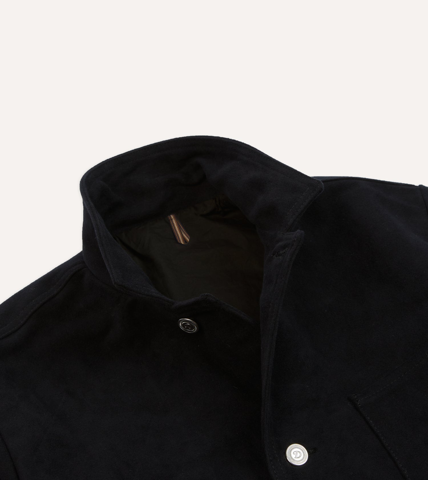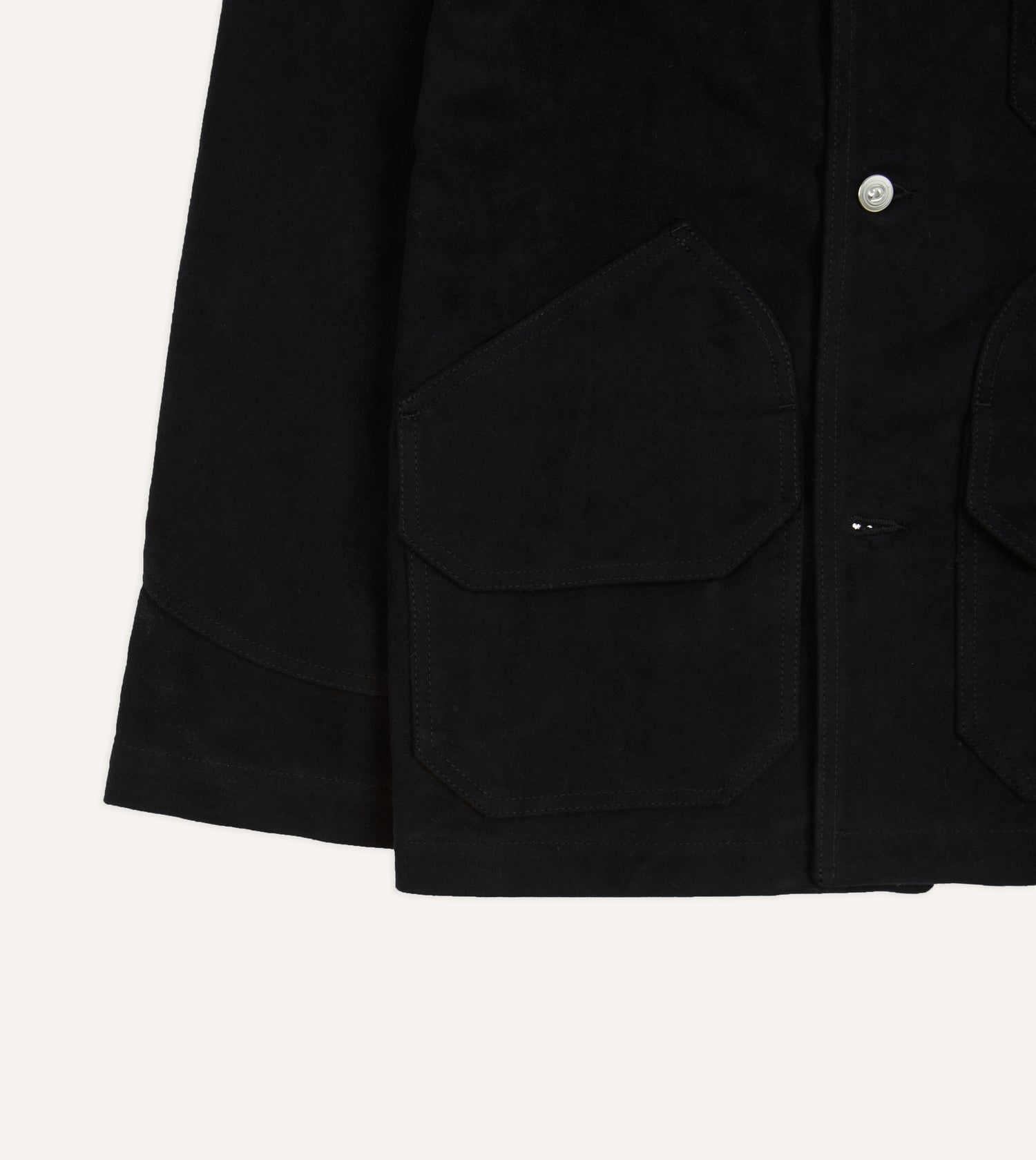 A staple of casual wardrobes the world over, the chore jacket retains its relevance on account of its stylishly spare construction, and its utmost versatility.|This variation features innovative double-flap hand warmer pockets, and is constructed from a sturdy Italian moleskin. It is cut generously, with a slightly boxy shape recalling the original workwear garments worn around the turn of the century, as opposed to their slimmed-down, contemporary counterparts.