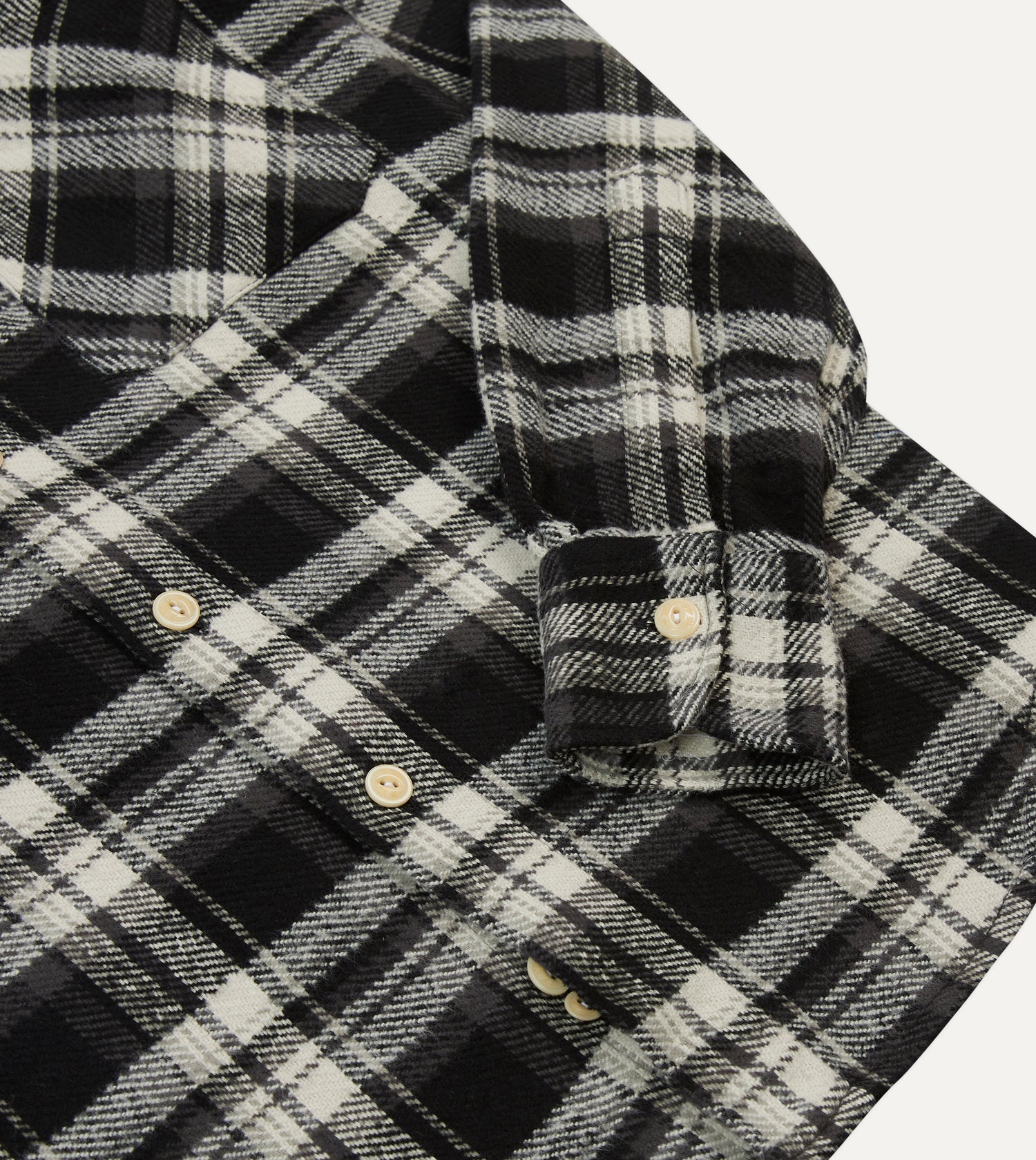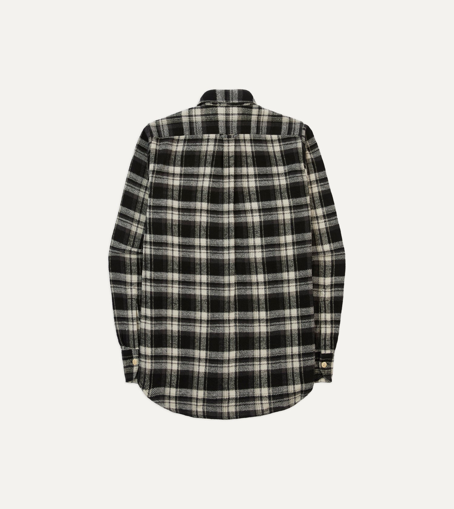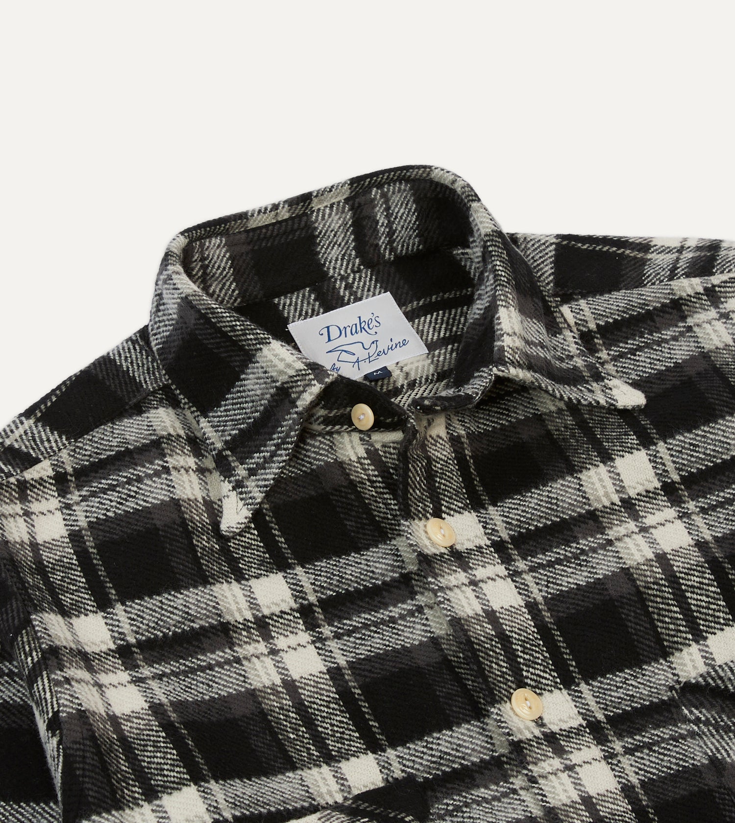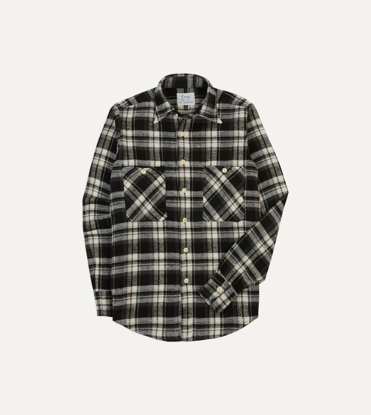 The rugged work shirt, cut from a substantial brushed cotton, offers utility and urbanity in equal measure. As at home pottering in the garden as paddling in the surf, the work shirt is anything but a chore to wear.|Featuring two deep button pockets for unburdened trousers, rounded cuffs and a stand collar ensuring fuss free mobility, and capped off with the fisheye corozo buttons and single-needle construction de rigueur to Drake’s shirting.