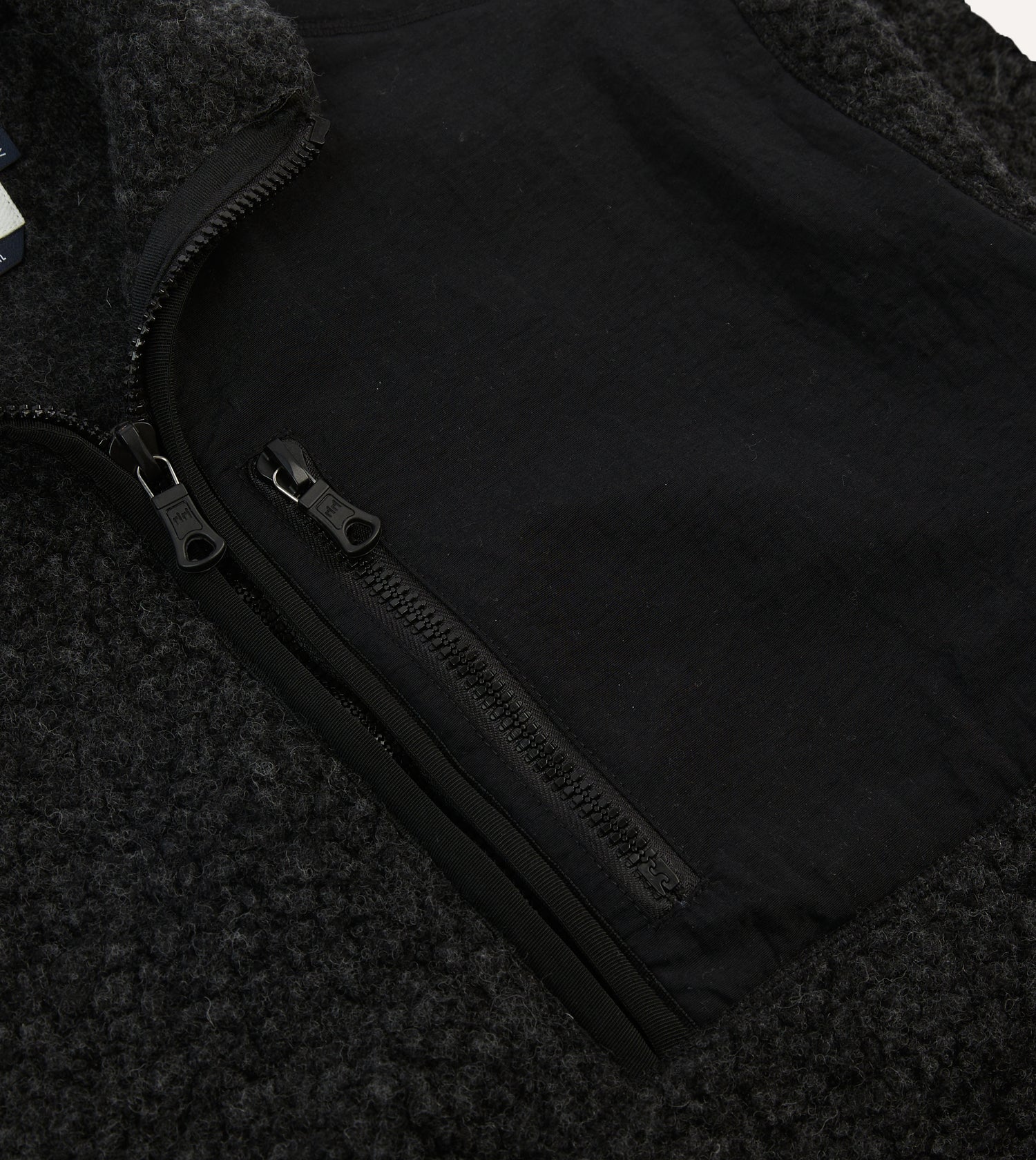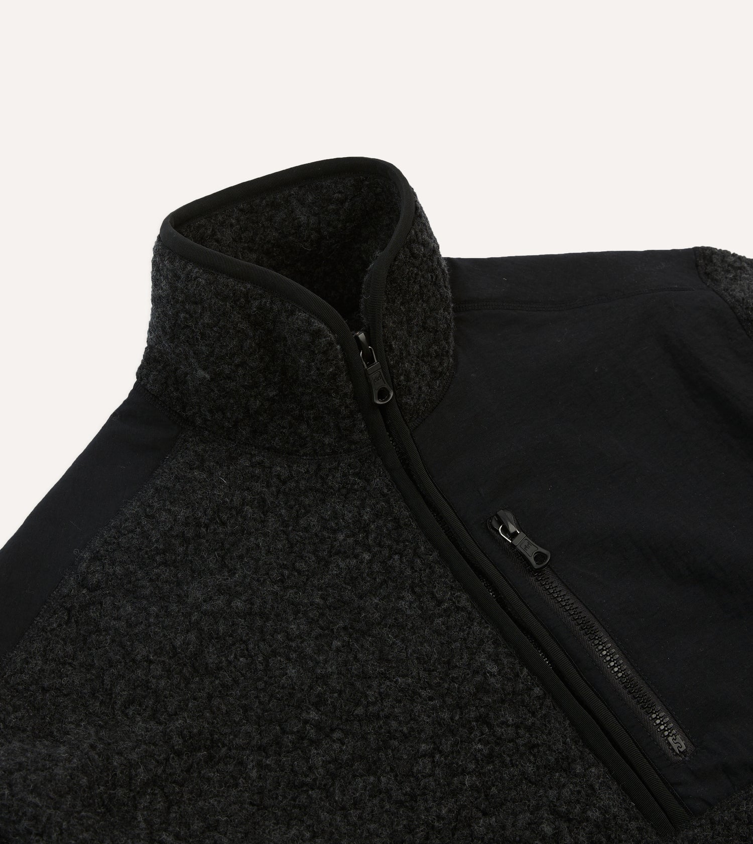 With a nod to plein-air Americana and Ivy League sporting apparel, this outdoorsy number is constructed from a densely knitted boucle wool jersey fleece from a mill that has been weaving fibres for generations.|The substantial texture and soft handle sets this apart from its synthetic contemporaries, while nylon panelling on the chest and sleeves lend an authentically athletic air to a transitional layering staple.