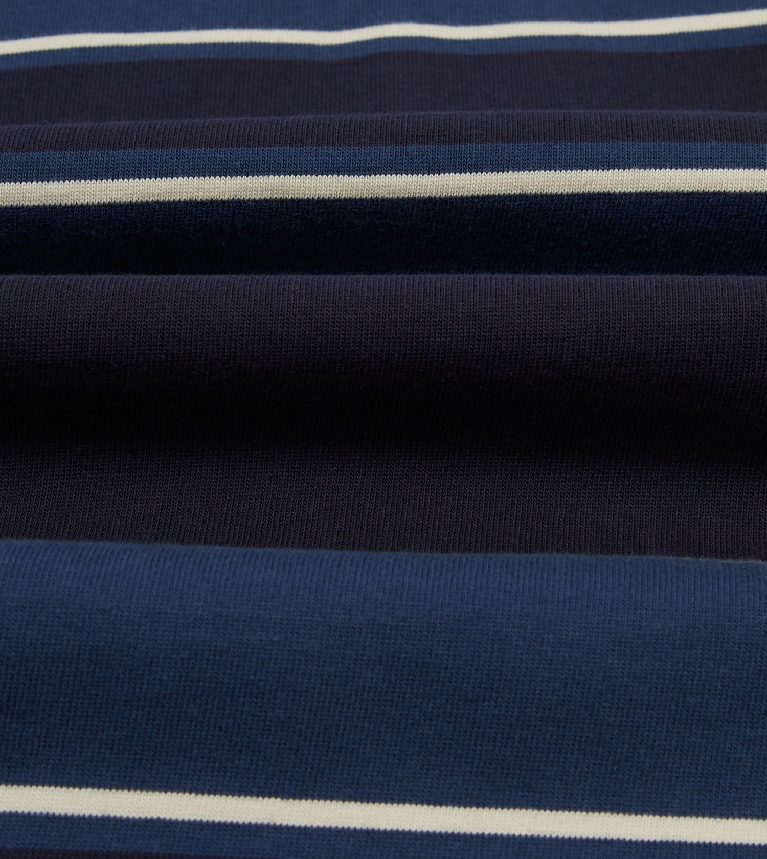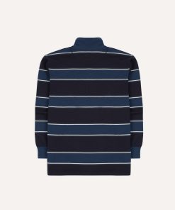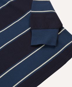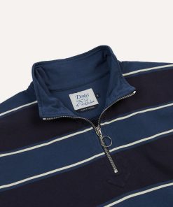 The rugby shirt has steadily become a staple of our collections, and this time around is no different. Cut from a densely knitted cotton, our idiosyncratic take on an enduring bit of vintage sportswear has a substantial feeling to it, as well as a certain tactility.|For our rugbies, we created a pattern inspired by our shirts by working closely with our shirtmakers to create a fit that is a bit less baggy and sporty, and more refined and elegant, finished with a quarter-zip collar to split the difference between a sweatshirt and a classic rugby.|The resulting pattern was one with a slightly trimmer body and a higher armhole, making the shirts perfect for wearing with tailoring, unlike their more traditionally shaped cousins.