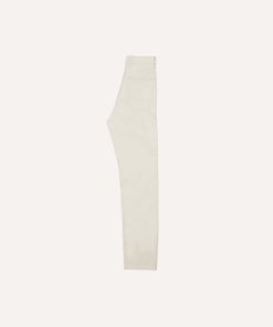 A new addition to our denim offering, these painter pants take cues from classic workwear while carrying the same relaxed elegance that runs through every Drake’s collection.|Cut from a sturdy 12.7oz selvedge denim, woven on shuttle looms in a natural ecru cotton that recalls early, un-dyed workwear fabrics. The silhouette is generous; high rise, full through the thigh and knee, tapering gently towards the hem.|Practical details nod to their utilitarian origins: bar-tacked back pockets, a side tool pocket, copper rivets, and our signature slanted front pockets. Subtle tonal stitching and clean finishing balance the rugged with the refined, making these trousers as at home in the studio as in the city.