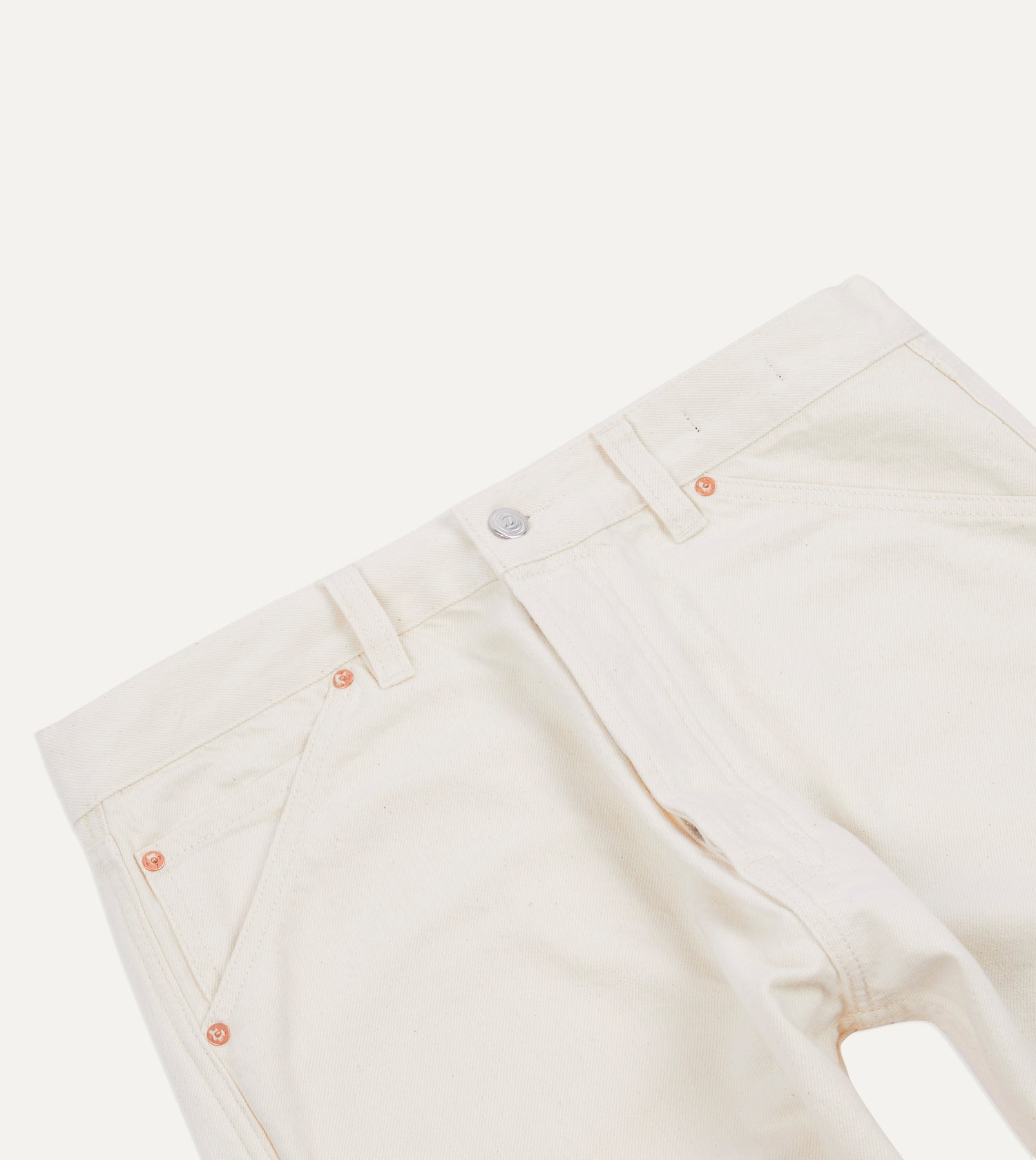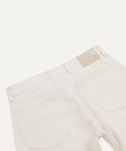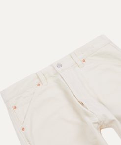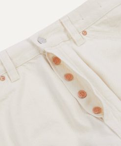 This classic pair of jeans is constructed from a high quality ecru 12.7oz selvedge denim from Italy.|Cut with a slightly higher rise and a relaxed, tapered fit, the jeans are finished with copper rivets, signature tonal stitching, and a unique slanted pocket design.