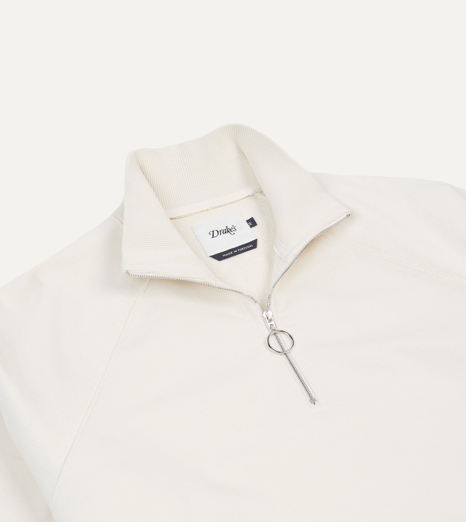 Drakes Men’s Ecru Cotton Quarter Zip Sweatshirt