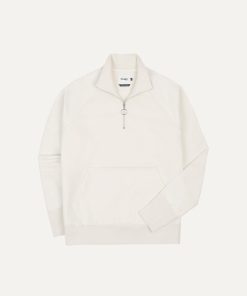 Drakes Men’s Ecru Cotton Quarter Zip Sweatshirt