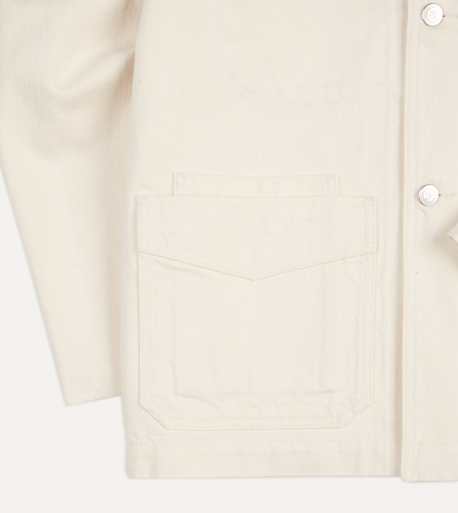 Drakes Men’s Ecru Selvedge Denim Five-pocket Chore Jacket