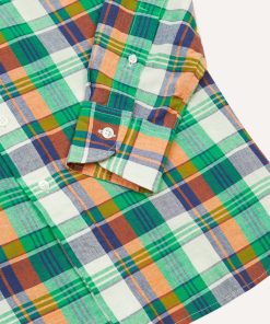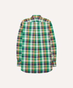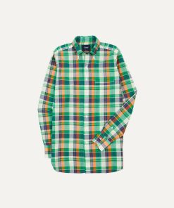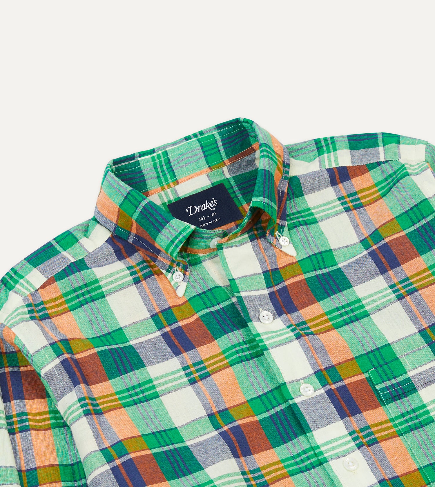Madras is a certified summer staple; woven in in Chennai, India (formerly named Madras) from a delicate, short-staple cotton fibre that is home-spun by hand, resulting in the slubby unique texture.|With the single-needle construction de rigueur to Drake’s shirting, plus whipped mother of pearl buttons and a button-down collar evocative of the style’s mid-century Ivy heyday, this pairs perfectly with our Games trousers and loafers.