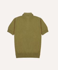 Drakes Men’s Green Knitted Crepe Cotton Short-sleeve Polo Shirt