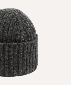Drakes Men’s Grey Donegal Ribbed Merino Knit Cap
