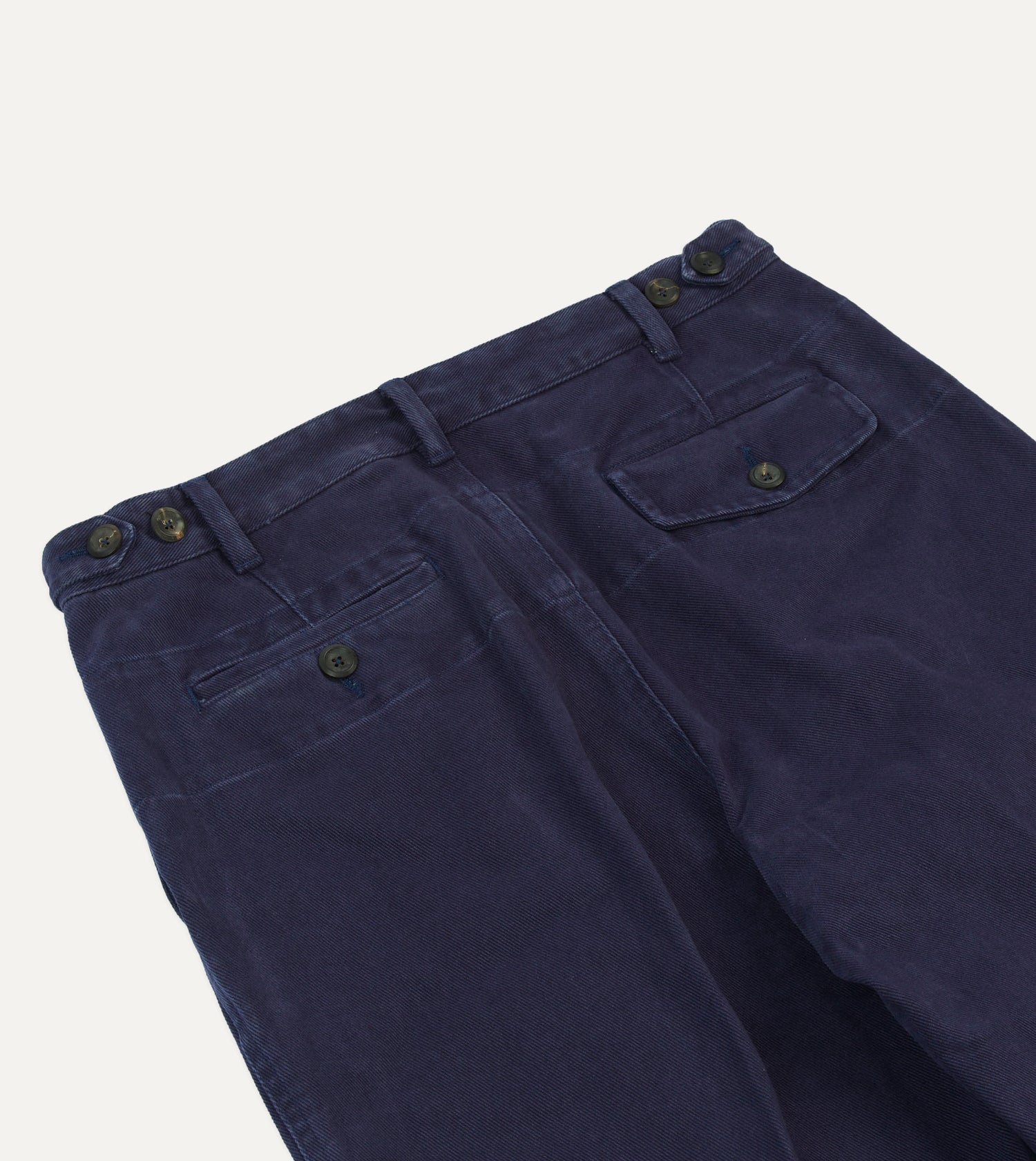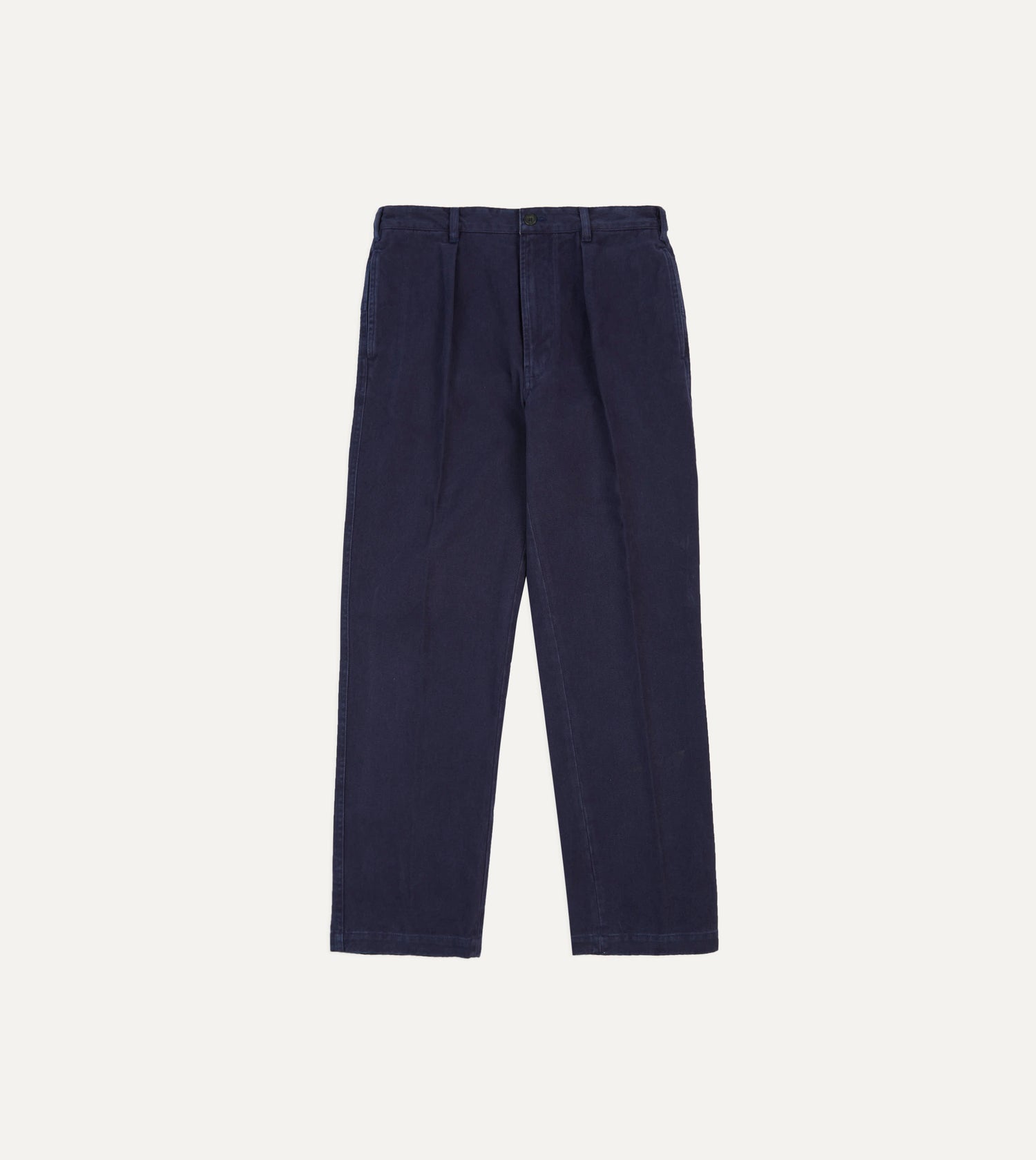 Designed as a companion to our Games Blazer, these relaxed fit trousers can be worn with the matching jacket for an ensemble that walks a line between tailoring and workwear.|Side adjusters alongside belt loops and a concealed fob pocket keep up the utilitarian nature of these trousers, while a full leg and high rise for a more tailored waist that sits just above the hip creates a classic, mid-century shape.|Featuring single pleats for greater freedom of movement, with a gentle taper below the knee, affording a clean, stylish silhouette suitable for year-round wear.|Cut from a heavy cotton twill woven in Yorkshire, pair it with the matching blazer for an informal take on the classic two-piece suit.