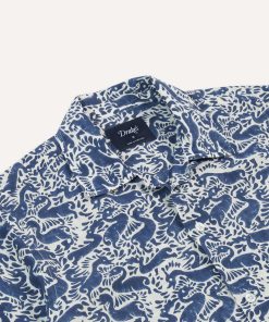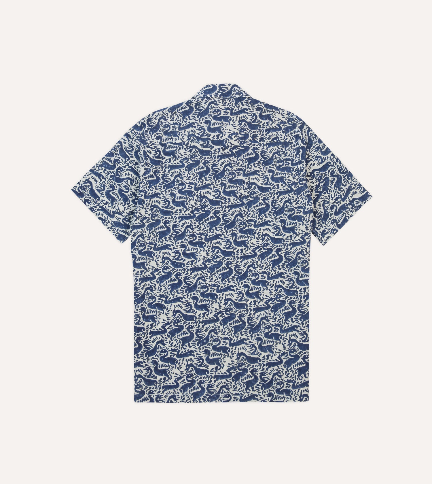 The camp collar holiday shirt has taken many forms‚ and many names‚ over the years, but its essential essence remains undiluted. It’s a simple, square-hemmed, short-sleeved shirt with an open collar. Not to be overdesigned or overthought.|The Drake’s take on this warm weather staple brings the story up-to-date; cut with a neat open collar, loose fit, plain front and straight hemline, all constructed from a soft, breezy cotton fabric, authentically block-printed by hand. It is, quite simply, the quintessential high summer shirt.