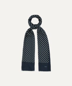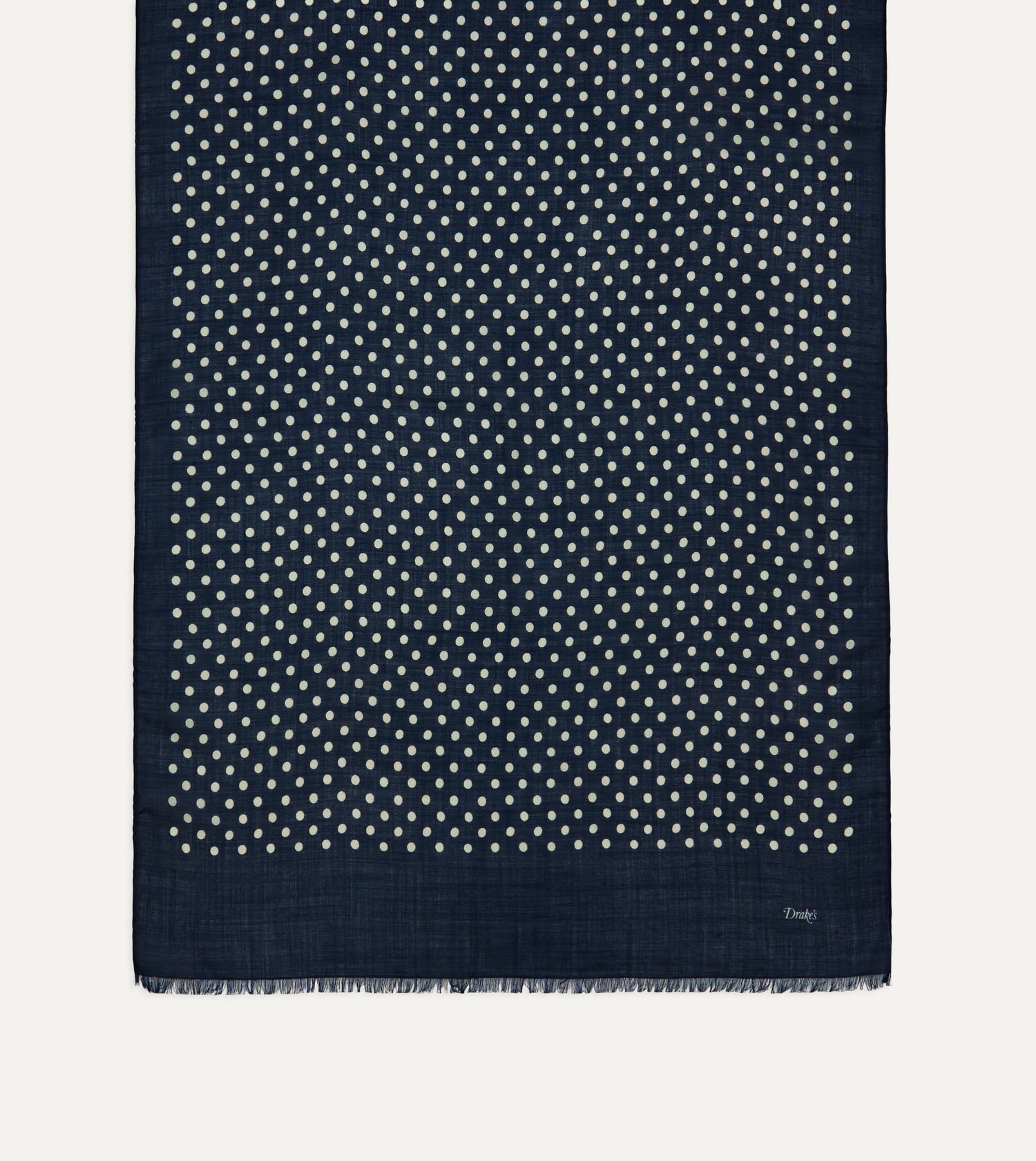 Drakes Men’s Navy Hand-drawn Polka Dot Wool-silk Scarf