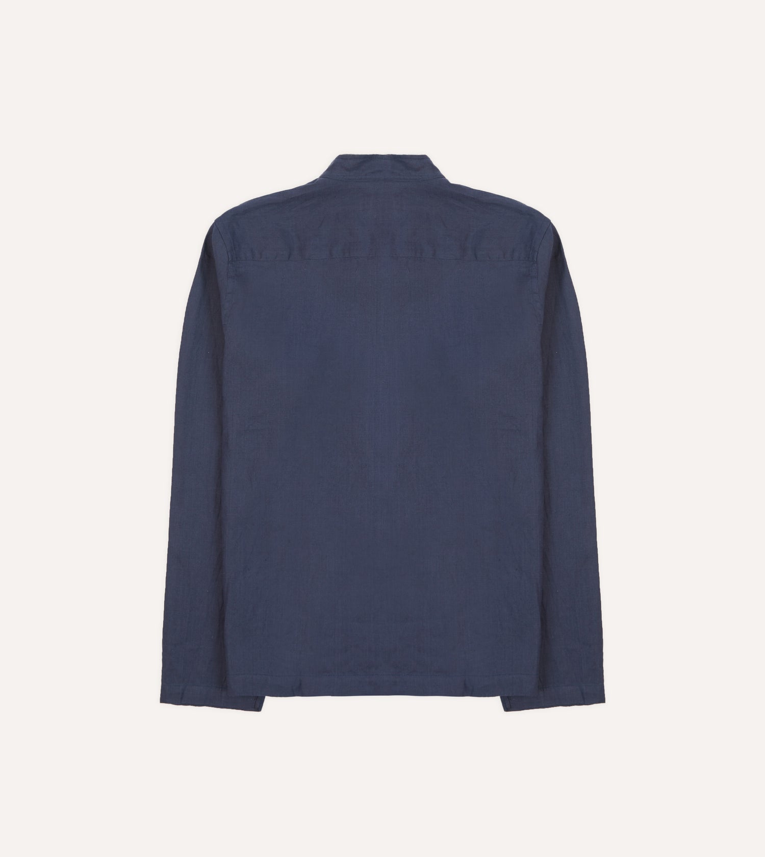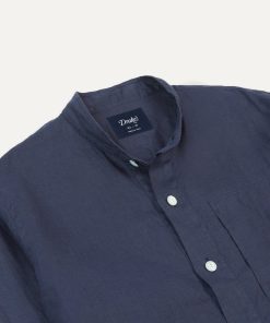 To wear linen is to embrace the season. A colour palette guaranteed to fade gracefully and a gently rumpled texture are the unmistakable calling cards of a great summer shirt.|This lightweight linen piece features a Mandarin (or Grandad) collar and a handy map pocket on the chest.