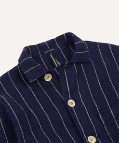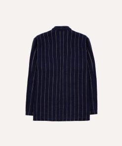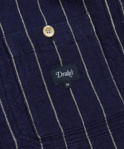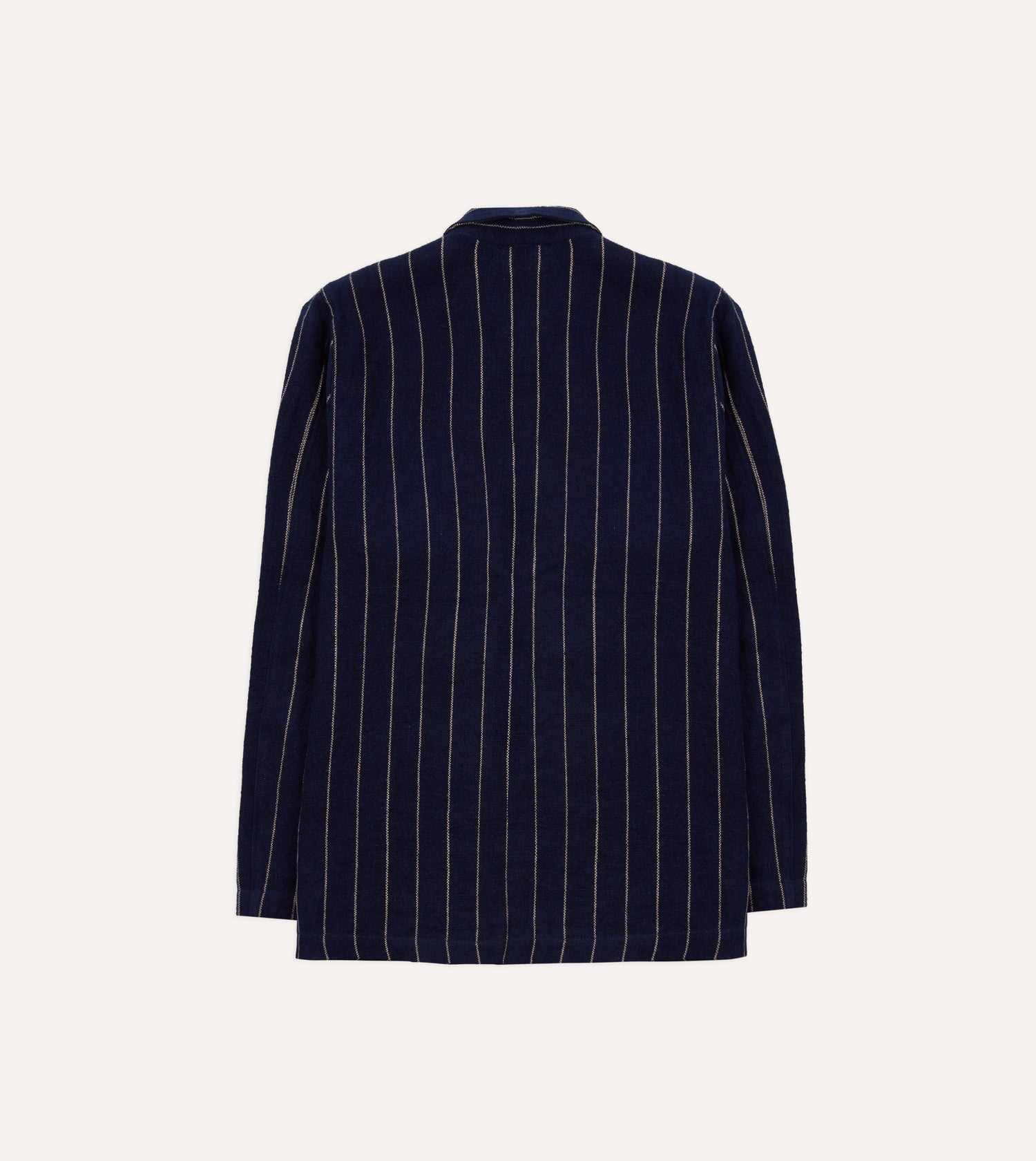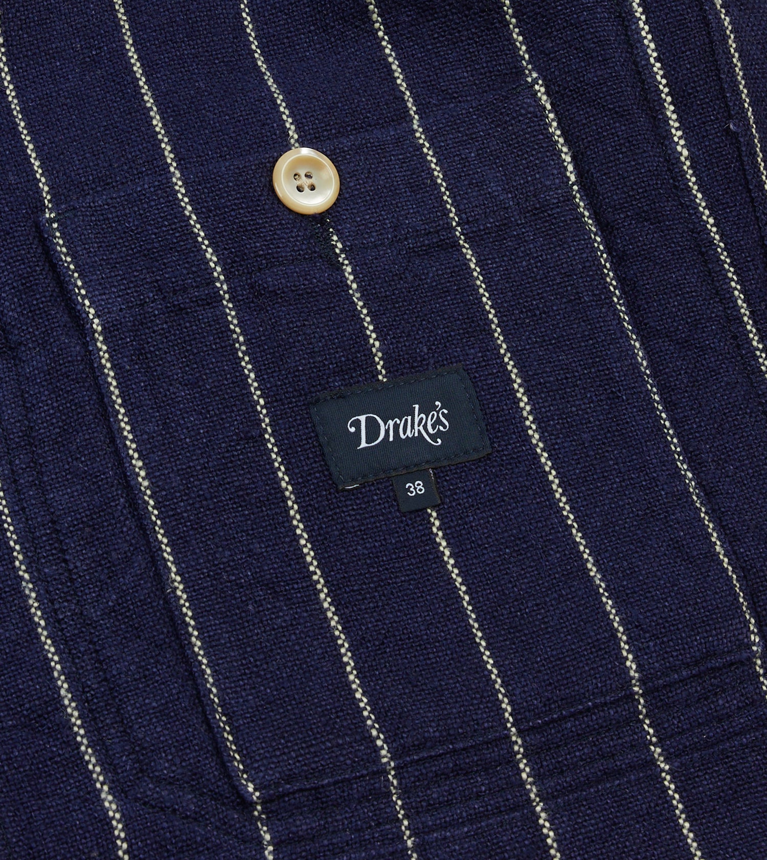 Drakes Men’s Navy Pinstripe Heavy Linen Five-pocket Chore Jacket