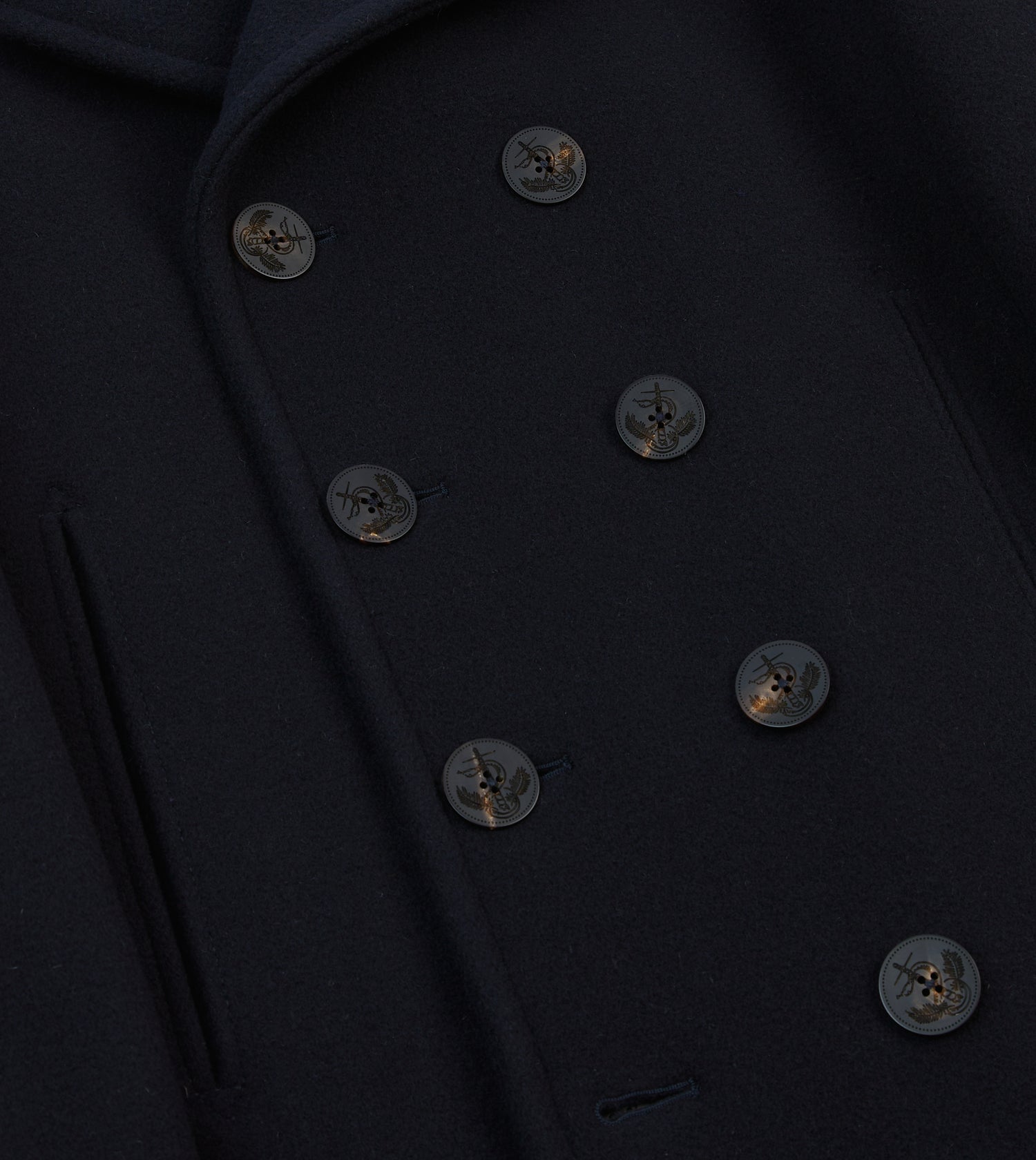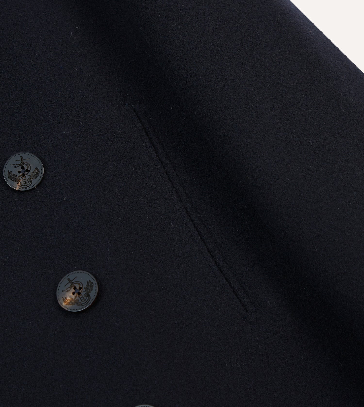 Drakes Men’s Navy Wool Double-breasted Peacoat