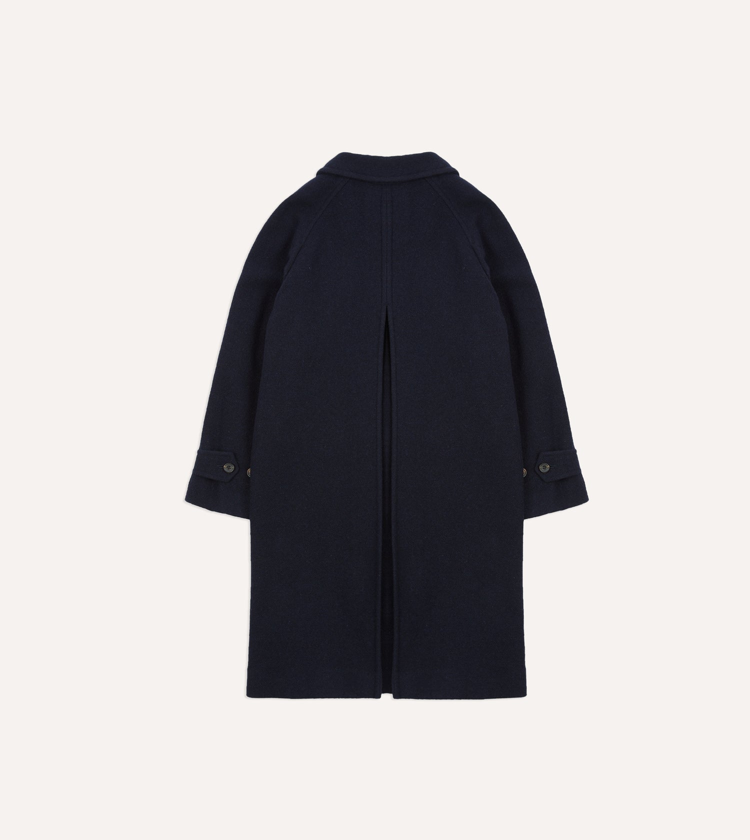 Constructed from 100% virgin wool, with a generous but contemporary silhouette, the raglan sleeve coat is a versatile and infallible outer layer that can go over anything and everything.|Unstructured and practical in design, the coat features a sturdy, serviceable collar and buttoned sleeve straps to defend against the elements, while split raglan shoulders, a fly front and considerable rear vent offer uninhibited manoeuvrability.
