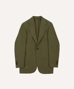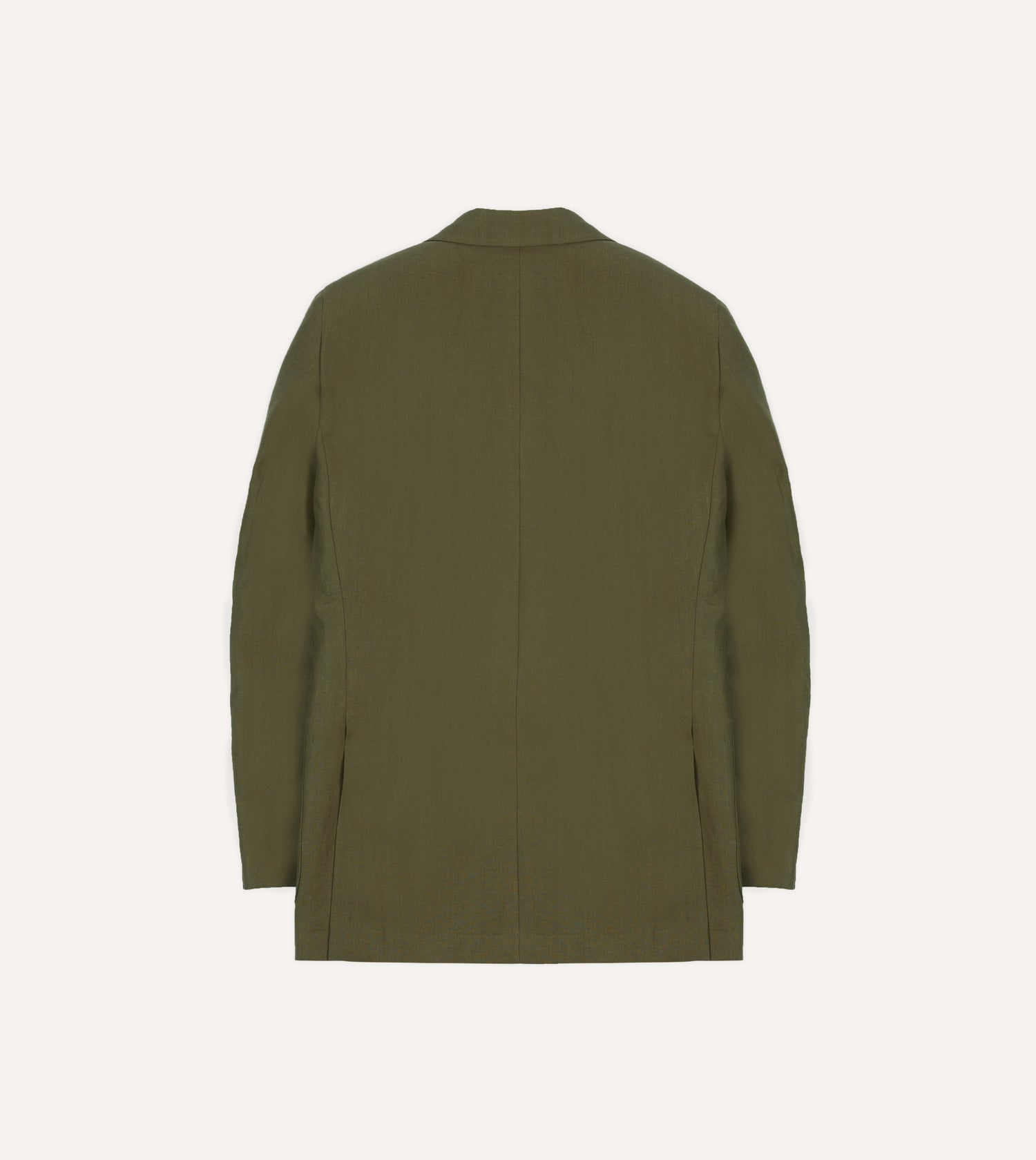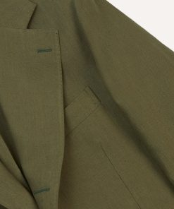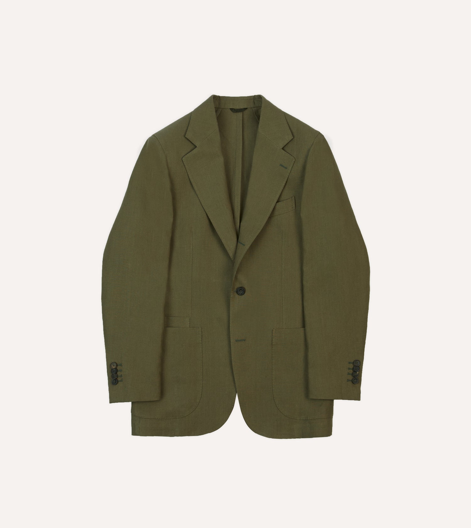 While there are a great many ways to approach warm weather dressing, really it’s the linen suit that always gets the last word on the subject of summer style. These are made from a beautifully soft linen, woven and dyed in Ireland to our exact specifications. The colours we meticulously developed to be the ideal summer suit colours.|Our house style features an unstructured silhouette, three-roll-two button stance, patch pockets and an unlined Italian construction, balancing convention with sartorial savoir-faire.|The Barchetta breast pocket (named for its resemblance to a “little boat”) and twin front darts keep things orthodox, while double vents and a discreet ticket pocket bring an added element of utility.|Available as part of a suit, with matching trousers.