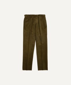 Drakes Men’s Olive Mid-wale Corduroy Single Pleat Trouser