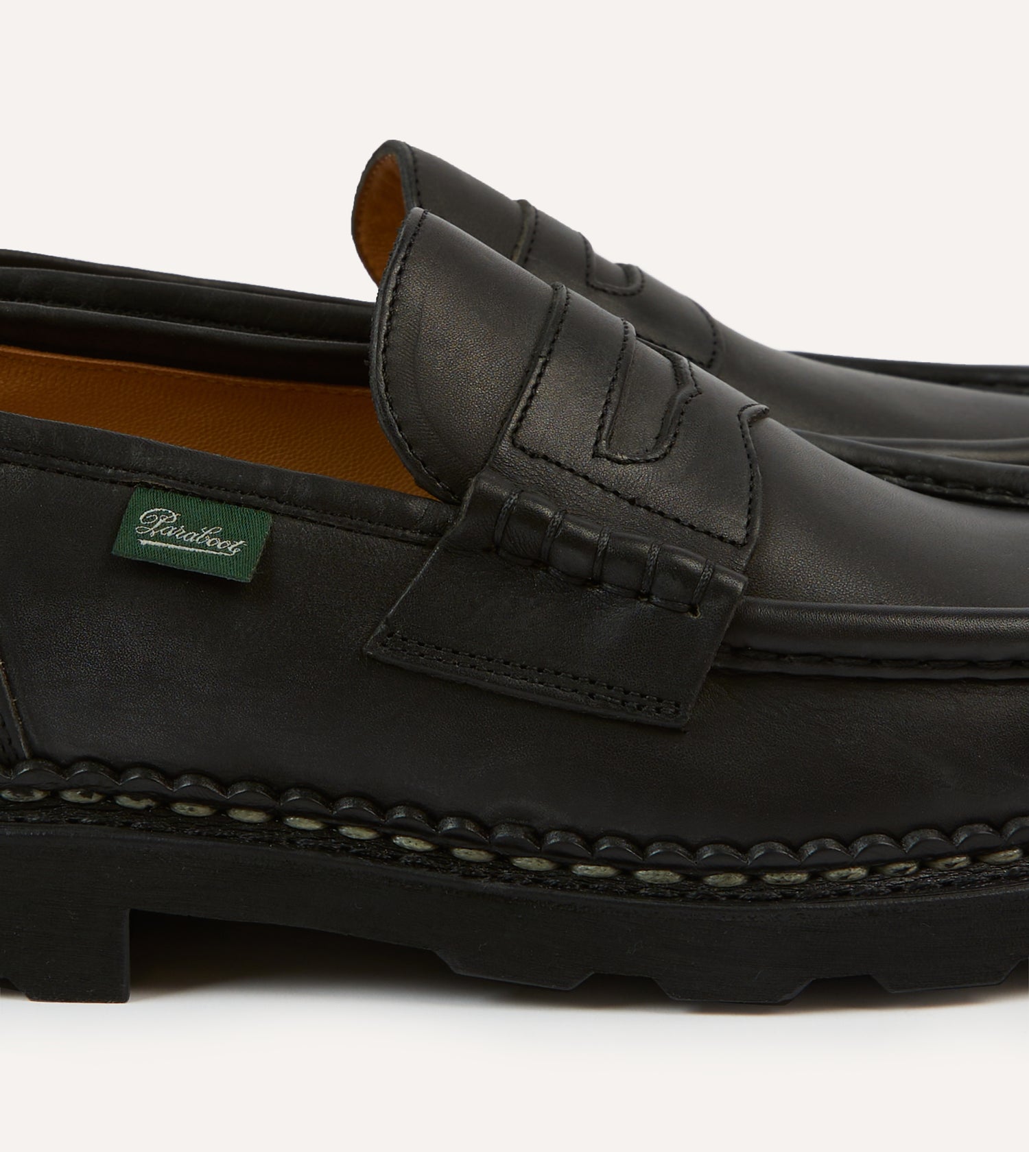With a well-deserved reputation for footwear par excellence, Paraboot’s shoes endure both physically and aesthetically. One of their most recognisable and iconic silhouettes, the Reims, is renowned throughout the world for it’s highly adaptable styling.|With the same heavy-duty waxy leather uppers and waterproof Norwegian welting that is de rigueur to the French cordwainers, the distinctive moccasin toe and rounded last add a touch of continental charm that works as well with tailoring as with light denim and a tee beneath a V-neck jumper à la French Ivy.