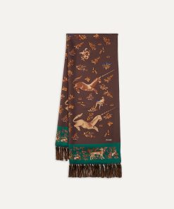 Drakes Men’s Perennials Brown Unicorn Print Tubular Silk Tasselled Scarf