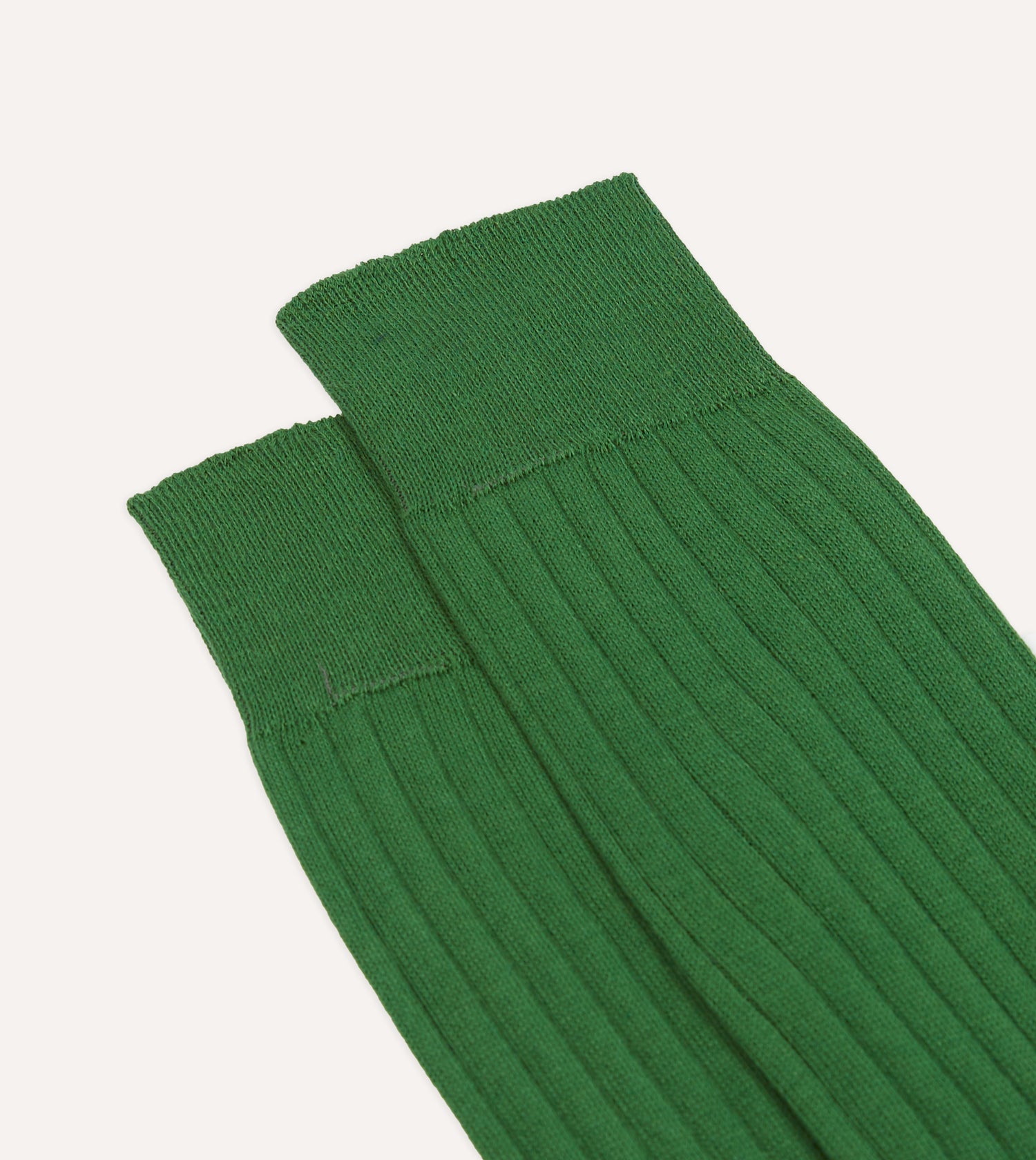 Drakes Men’s Perennials Green Cotton Mid-calf Socks