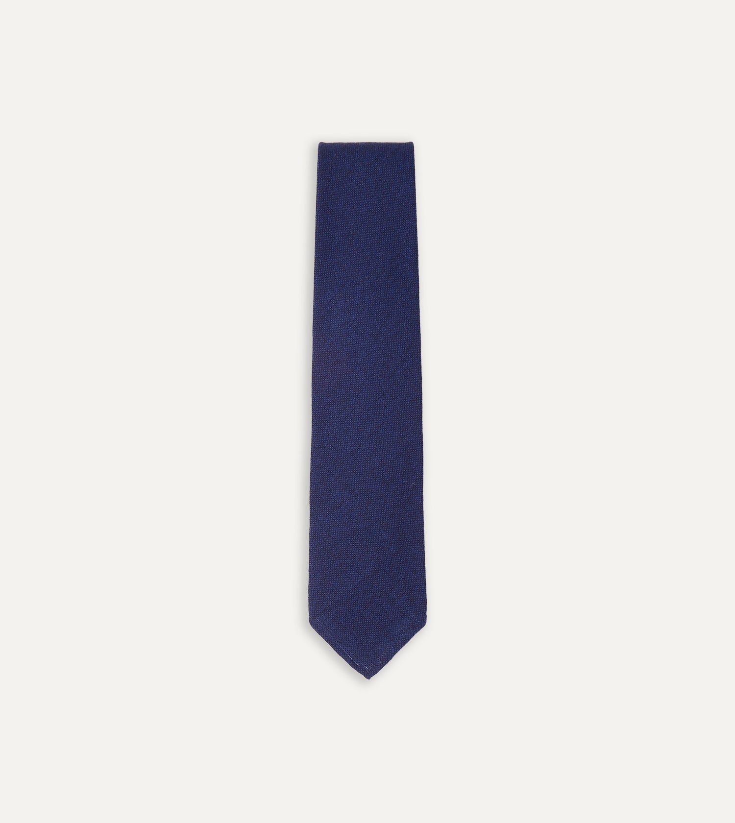 Drakes Men’s Perennials Light Navy Pure Cashmere Solid Hand Rolled Tie