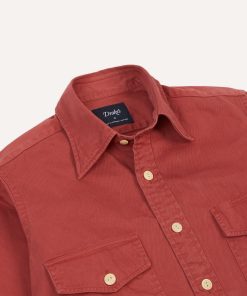 The rugged work shirt, cut from a stonewashed cotton, offers utility and urbanity in equal measure. As at home pottering in the garden as paddling in the surf, the work shirt is anything but a chore to wear.|Featuring two mitred button-flap pockets for unburdened trousers, twin-button cuffs and a long point collar for a decidedly more sartorial leaning, this are capped off with the same single-needle construction and corozo buttons de rigueur to Drake’s shirting.