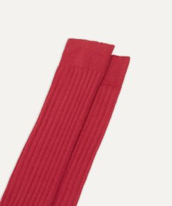 Drakes Men’s Red Cotton Over-the-calf Socks