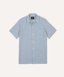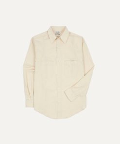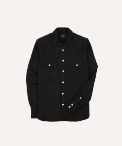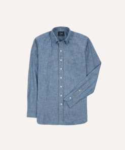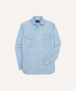 Drakes Men’s Bleach Wash Chambray Cotton Long Sleeve Cuban Shirt