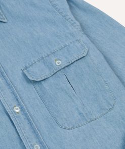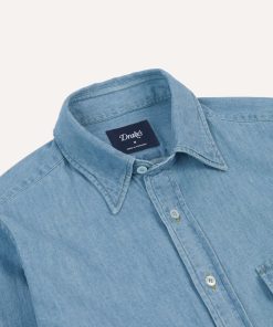Built for both utility and understated style, this rugged shirt moves seamlessly from workshop to weekend. Practical yet effortless, it is designed to be anything but a chore to wear.|Cut from a 5.7oz Japanese denim, it features a curved hem, single-button cuffs, and a military pleated chest pocket, perfect for keeping essentials close without weighing down your trousers. Every detail, from the fisheye mother of pearl buttons to the single-needle construction, reflects Drake’s hallmark attention to quality.
