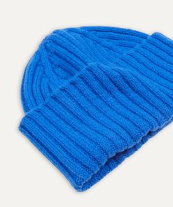Drakes Men’s Blue Lambswool Ribbed Knit Cap