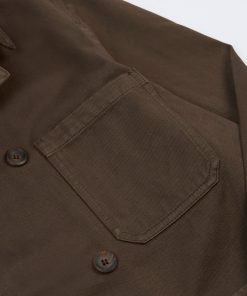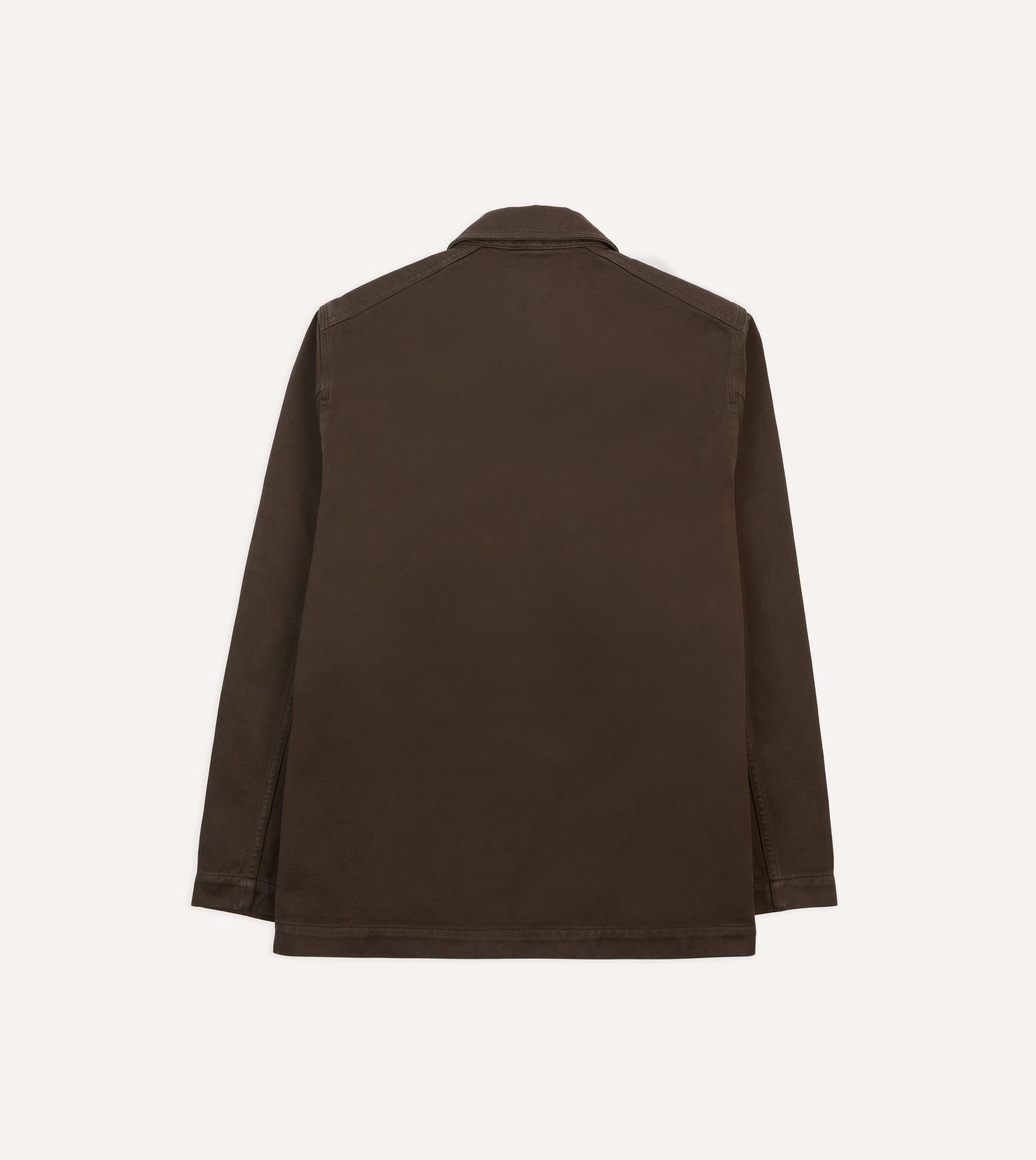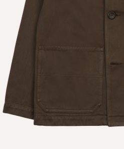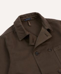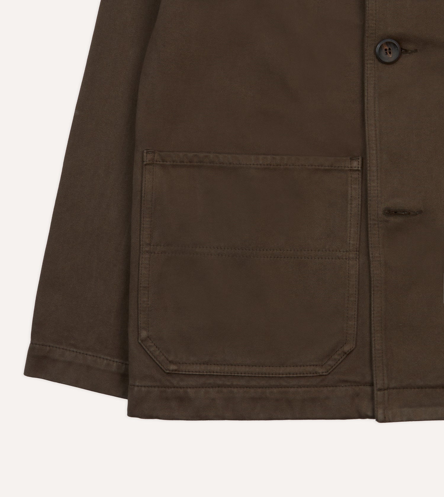 A new double-breasted style of our signature chore jacket, drawing on the hardwearing clothes worn by sculptors, painters, poets and stevedores throughout the 20th century.|Made from a 16.5oz satin-backed military cloth, the jacket features 4×2 horn buttons and three ample outside pockets, along with twin internal poacher pockets.