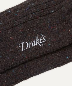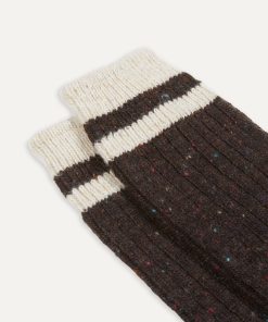 Drakes Men’s Brown Striped Donegal Wool Socks