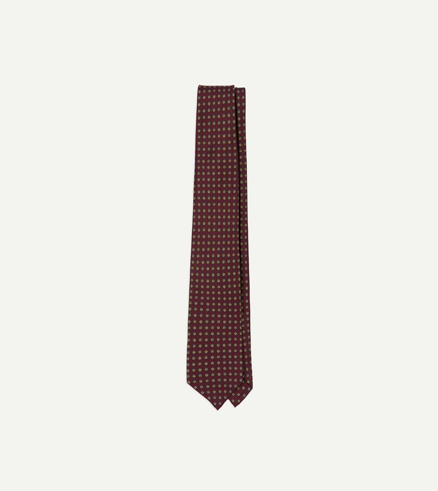 Be the first to review “Drakes Men’s Burgundy Micro Geometric Print Silk Self Tipped Tie” Cancel reply