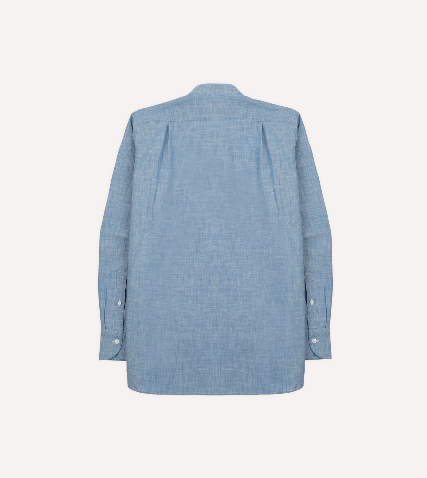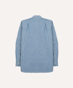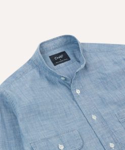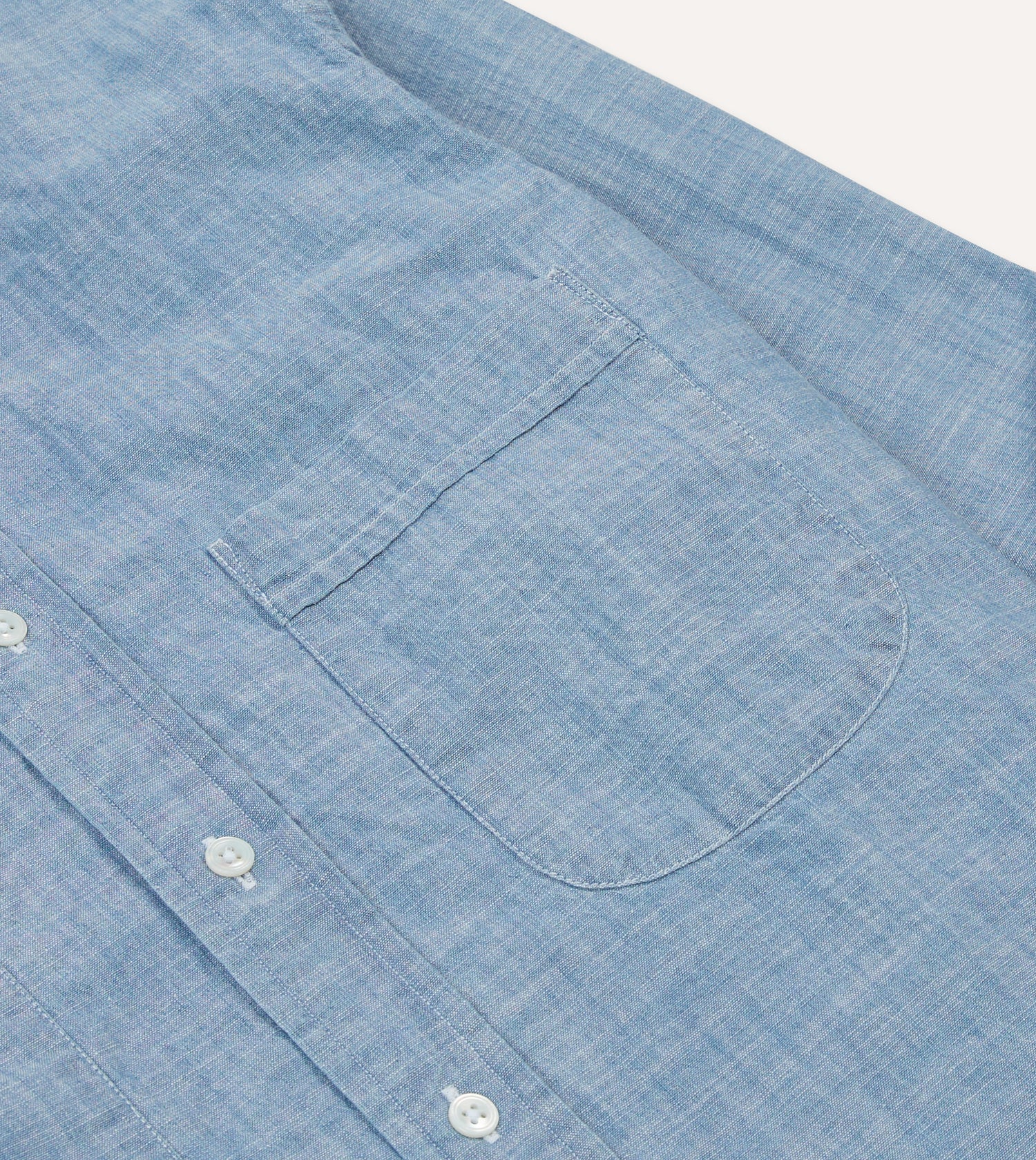 Constructed in our Somerset factory, this classic piece of shirting features a Mandarin (or Grandad) collar, irregular chest pockets inspired by workwear, and the same the same single-needle construction and mother of pearl buttons de rigueur to Drake’s shirting.|A shirt like this can be worn casually, untucked with a pair of shorts or chinos, or dressed up with warm-weather tailoring, be it a suit or separates. It’s a versatile piece of clothing that will see you through the summer in style.
