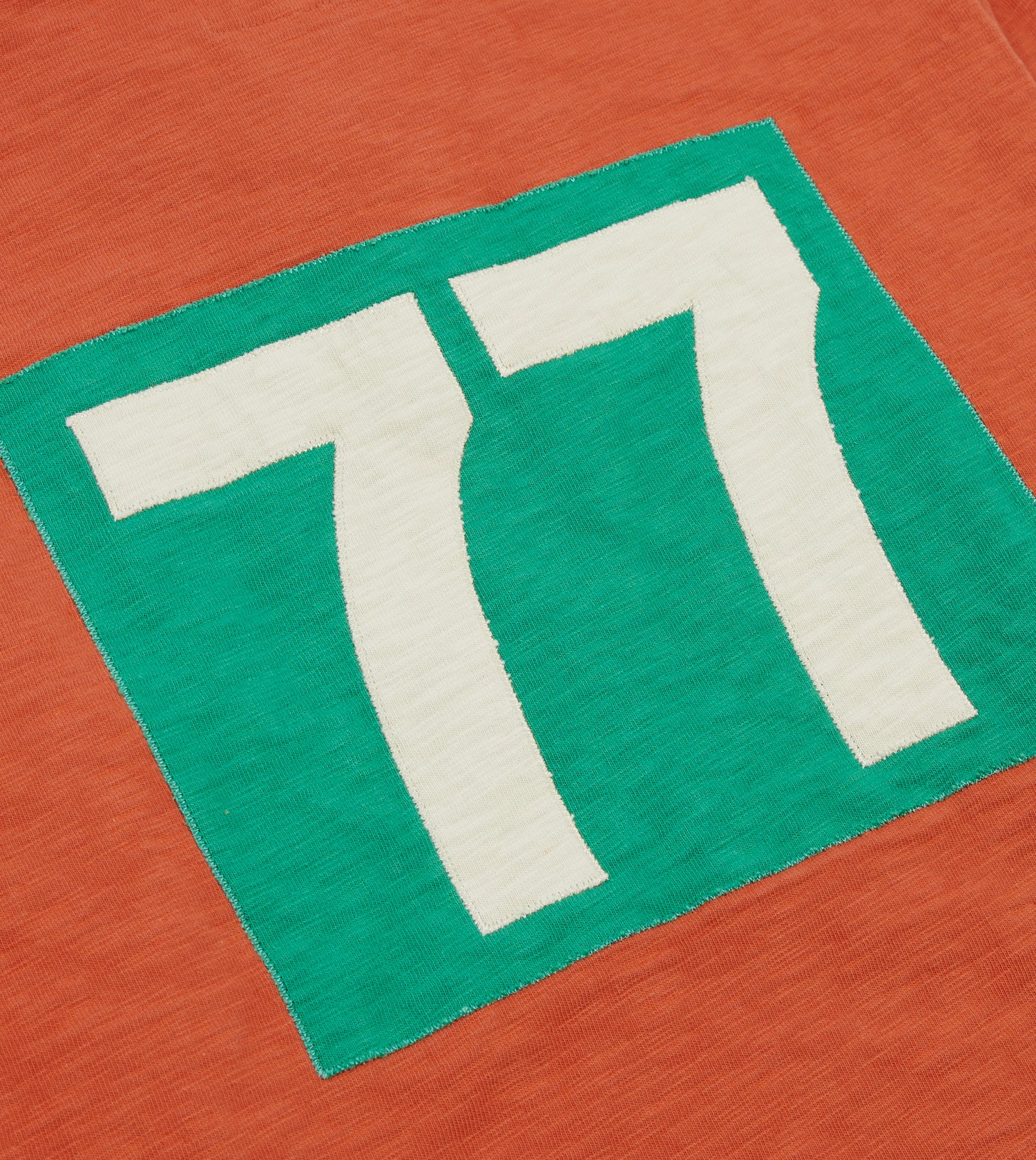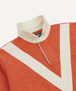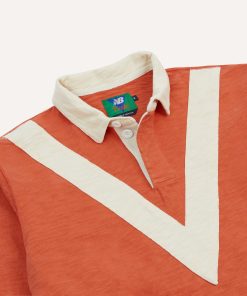 An enduring piece of vintage sportswear, reimagined for our collaboration with New Balance, our rugby shirt takes cues from both classic athletic wear and the refined spirit of our shirting, striking a careful balance between rugged and elegant.|Cut from a substantial cotton flamé fabric with a subtly slubby texture and a touch of stretch, it offers both comfort and tactility. The pattern, developed with our shirtmakers, features a trimmer silhouette and a higher armhole, designed to sit comfortably beneath tailoring or worn casually with denim or chinos.|For this limited edition version, a chevron panel at the front nods to sporting heritage, while a bold ‘77’ at the back marks the year of Drake’s founding, a subtle wink to both provenance and play.