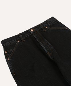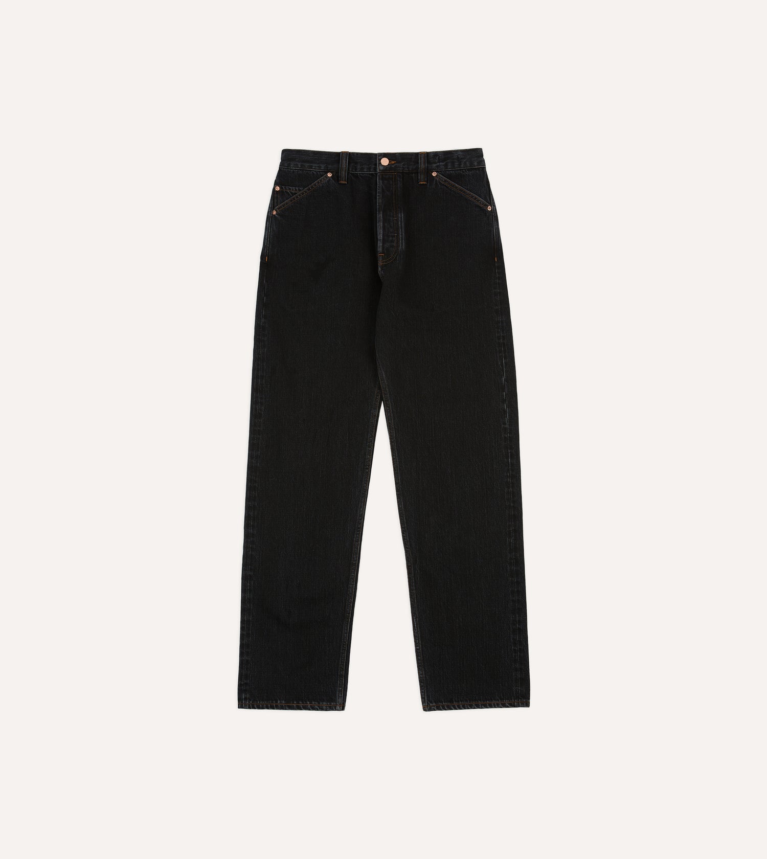 This classic pair of jeans is constructed from a high quality 12.3oz selvedge denim from Okayama, Japan. The denim is woven on an extremely rare shuttle loom, and is dyed using a natural process.|Cut with a slightly higher rise and a relaxed, tapered fit, the jeans are finished with copper rivets and a unique slanted pocket design.