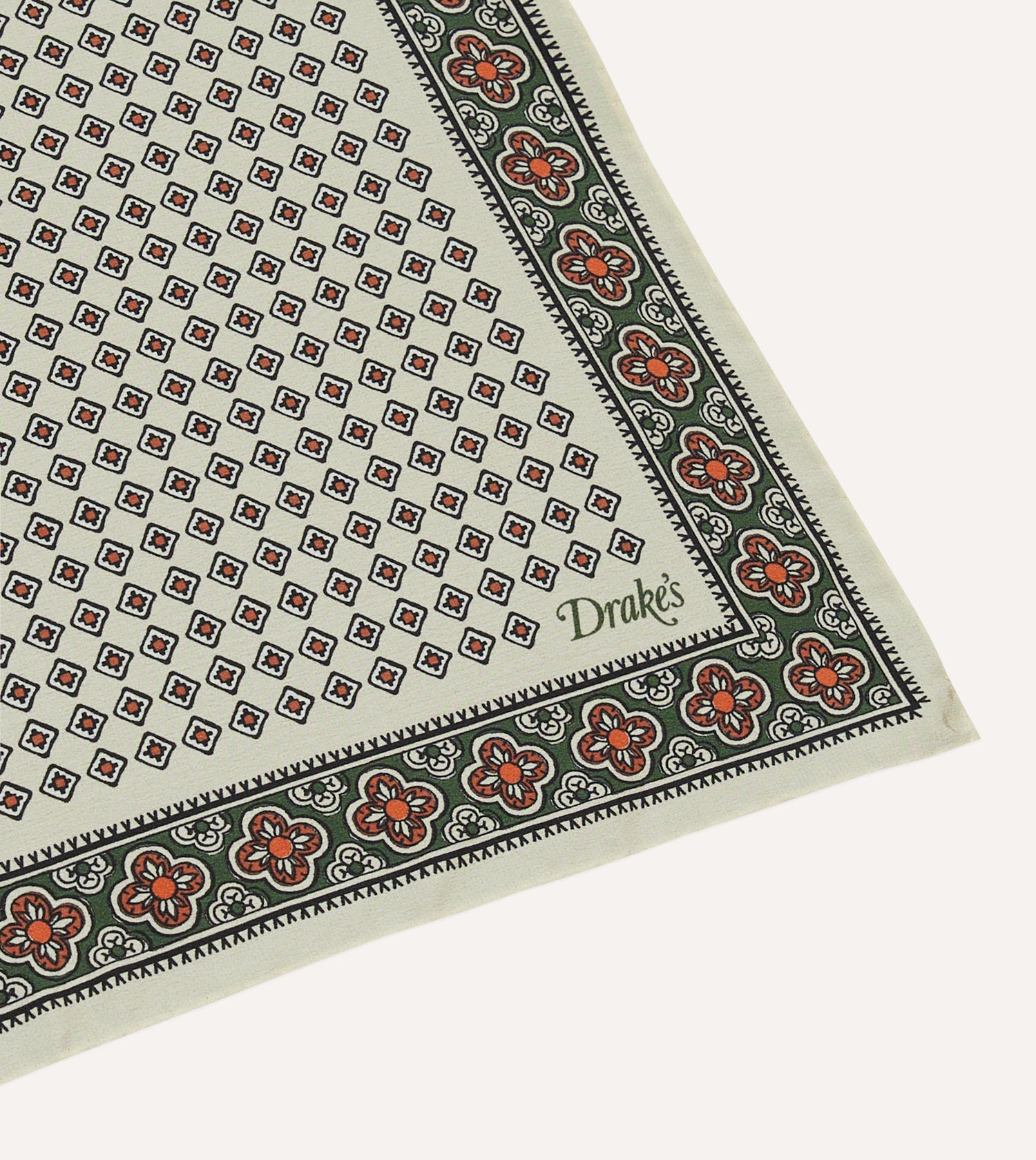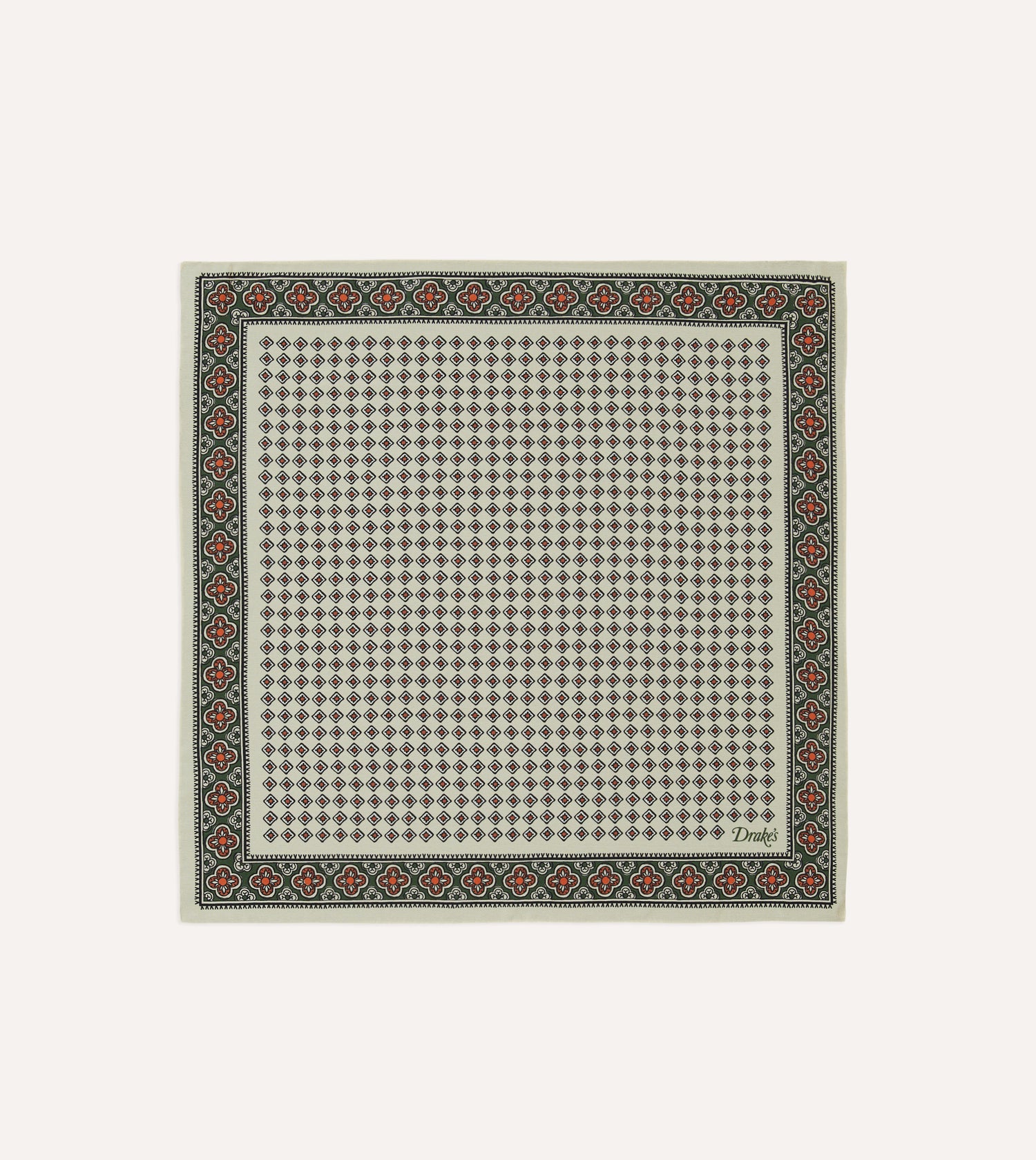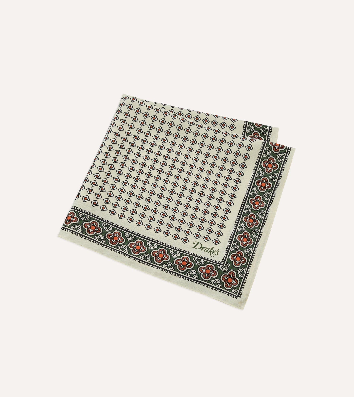 Taken from our extensive design archive, this vintage motif has been vividly applied to a pure silk, creating a dynamic visual contrast however it is folded (or stuffed) in one’s pocket.