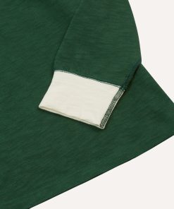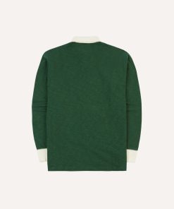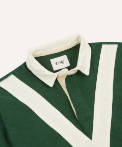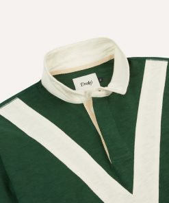 The rugby shirt has steadily become a staple of our collections, and this time around is no different. Cut from a cotton flamé fabric with a slightly slubby texture and a comfortable stretch, our idiosyncratic take on an enduring bit of vintage sportswear has a substantial feeling to it, as well as a certain tactility.|For our rugbies, we created a pattern inspired by our shirts – the collar in particular takes its cues from our ‘English Classic’ style – by working closely with our shirtmakers to create a fit that is a bit less baggy and sporty, and more refined and elegant.|The resulting pattern was one with a slightly trimmer body and a higher armhole, making the shirts perfect for wearing with tailoring, unlike their more traditionally shaped cousins.